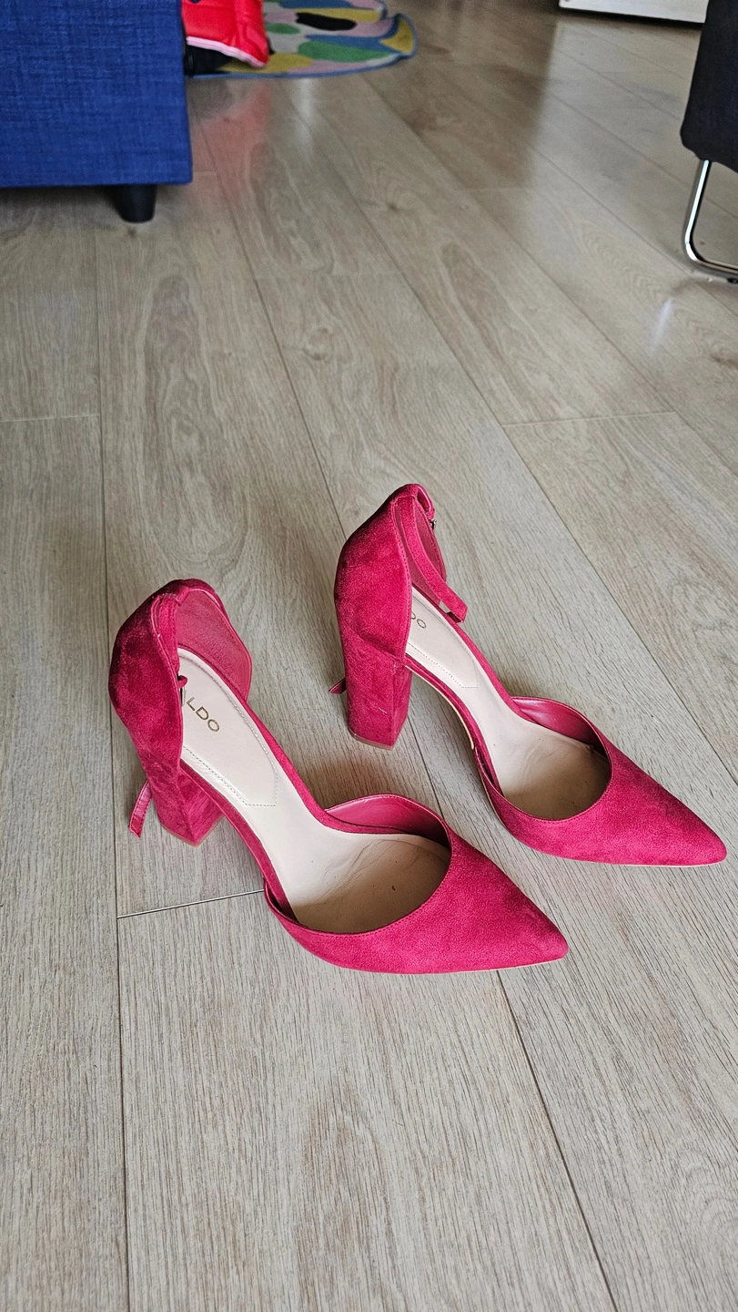 Selling a pair of ALDO red suede heels in size 11. They are in great condition and would be a lovely addition to your wardrobe!
