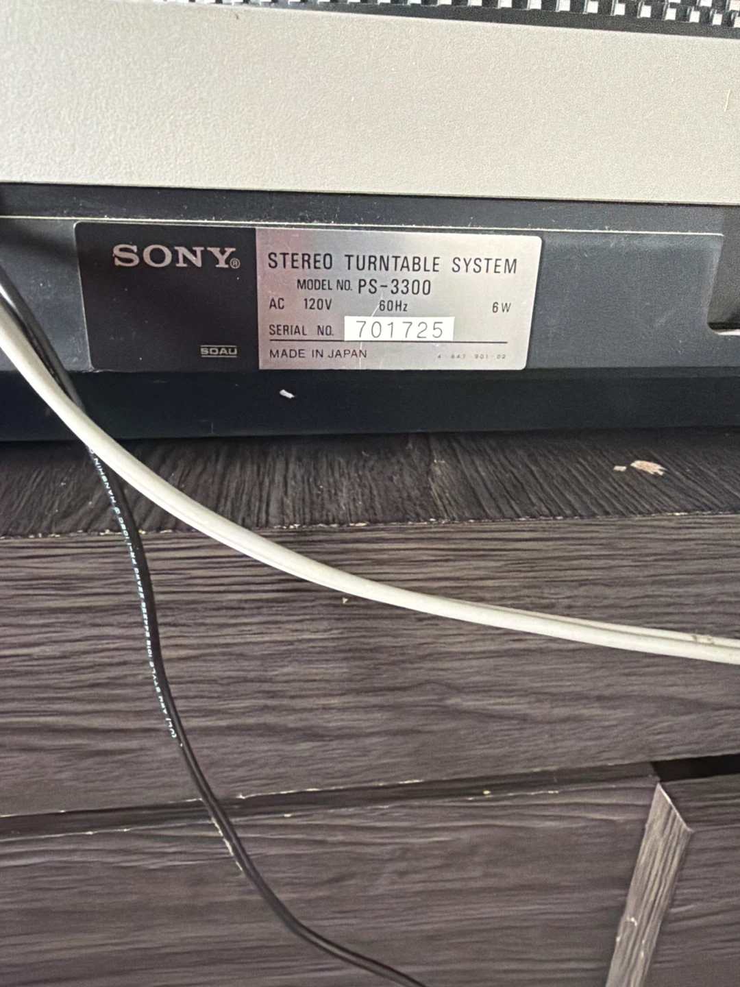 1 / 41 / 4Buy & SellSony PS-3300 Stereo Turntable SystemSony PS-3300 Stereo Turntable System$190Sony PS-3300 Stereo Turntable System. Direct drive. Made in Japan. Comes with power cord.ConditionLike newBrandSonyWHERE TO MEET135 Fenelon DrView MapSELLERverifiedSamiGraydon Hall790 reviews2 chats·0 favorites·17 viewsSEND CHAT TO SELLERHi Sami! I’m interested in your listing.Hi Sami! I’m interested in your listing.Get the Karrot app to chatSign In to chat