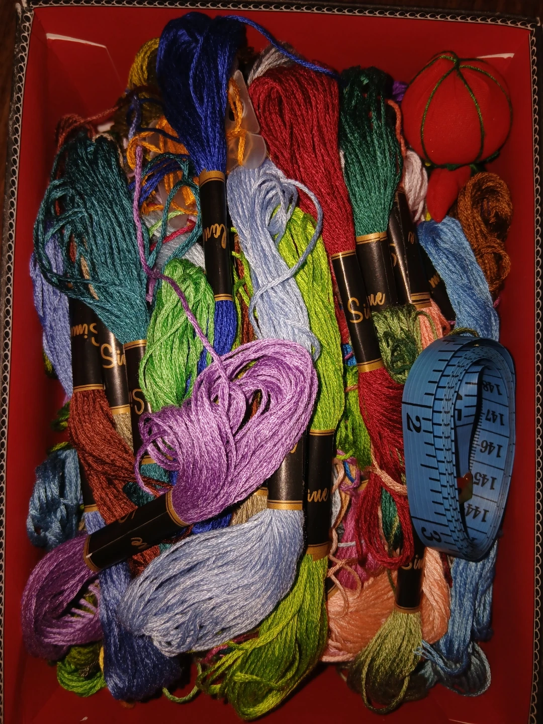 This comprehensive kit includes embroidery hoops in various sizes, coloured embroidery threads, needles, a tomato pincushion, a measuring tape and more! It's perfect for starting new embroidery projects or for adding to your crafting supplies.