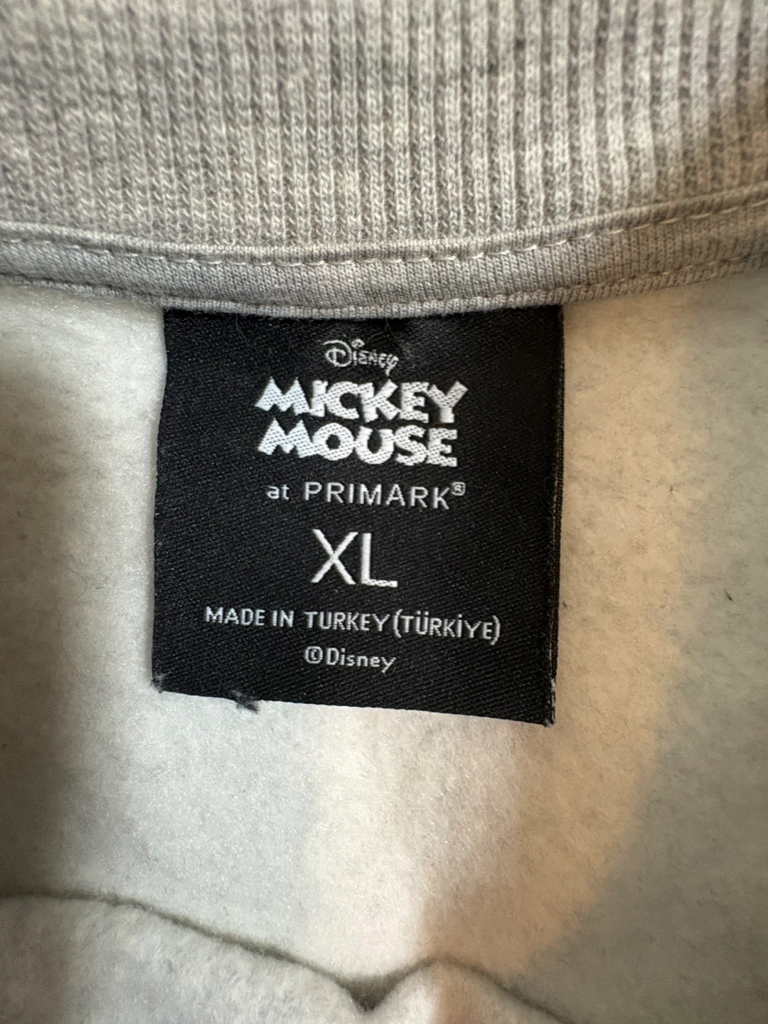 Grey sweatshirt with a vintage Mickey Mouse graphic. It's size XL and made in Turkey. This comfortable pullover is perfect for Disney fans!