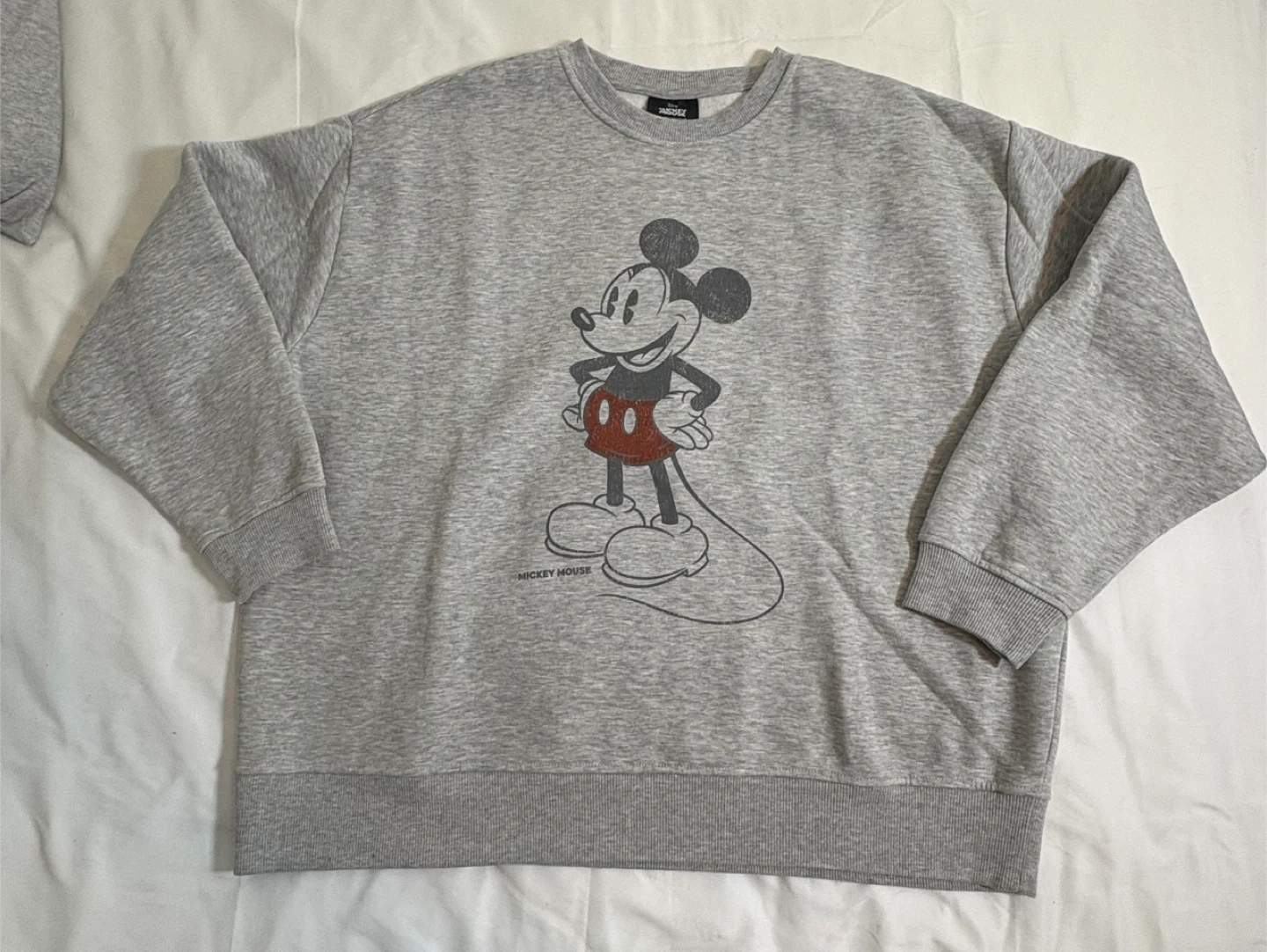 Grey sweatshirt with a vintage Mickey Mouse graphic. It's size XL and made in Turkey. This comfortable pullover is perfect for Disney fans!