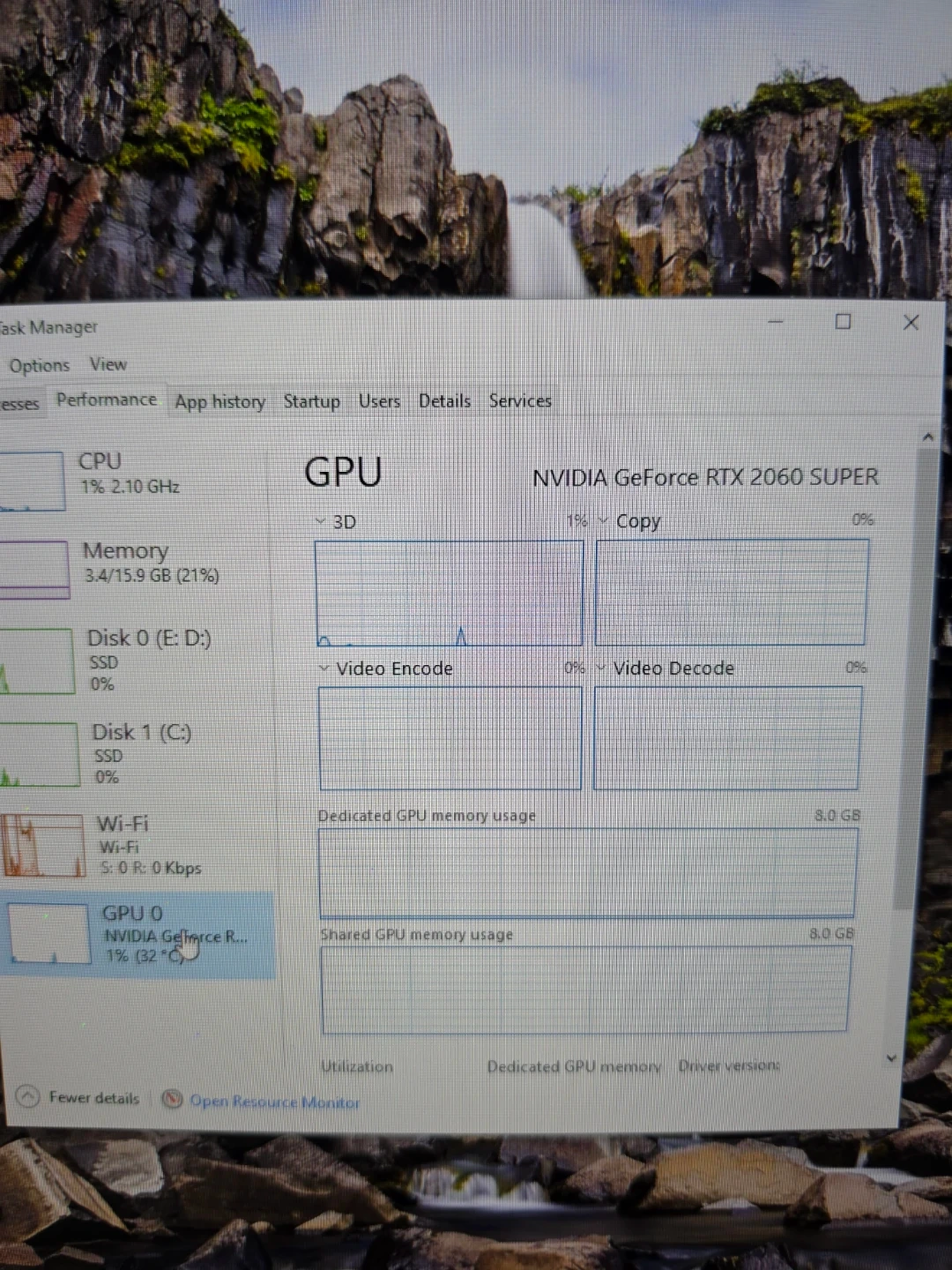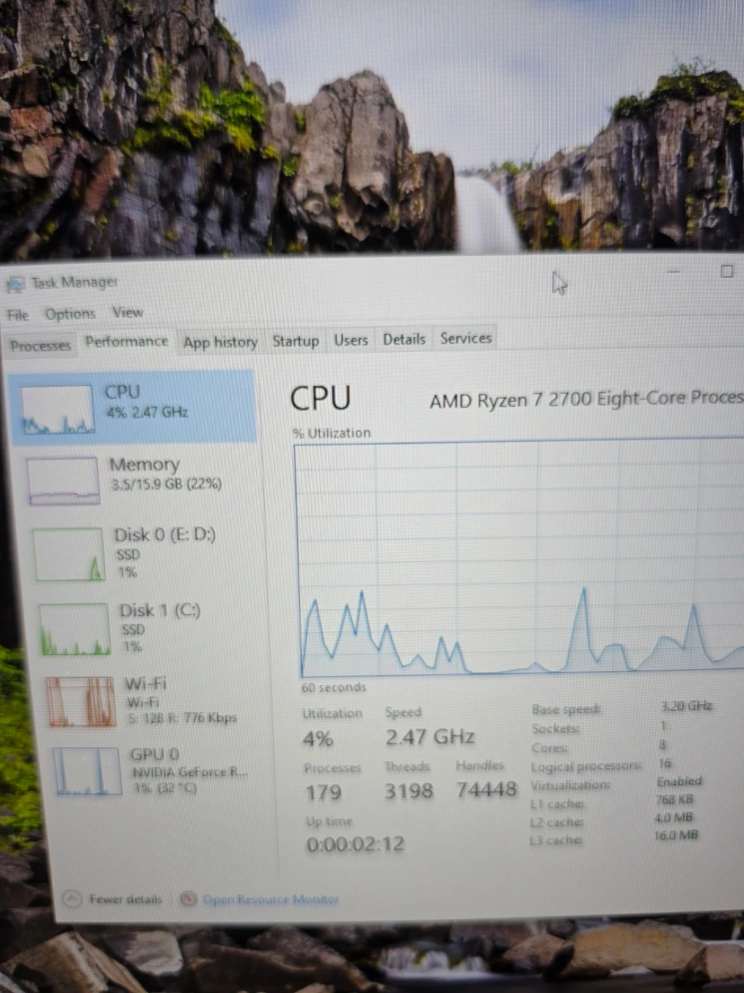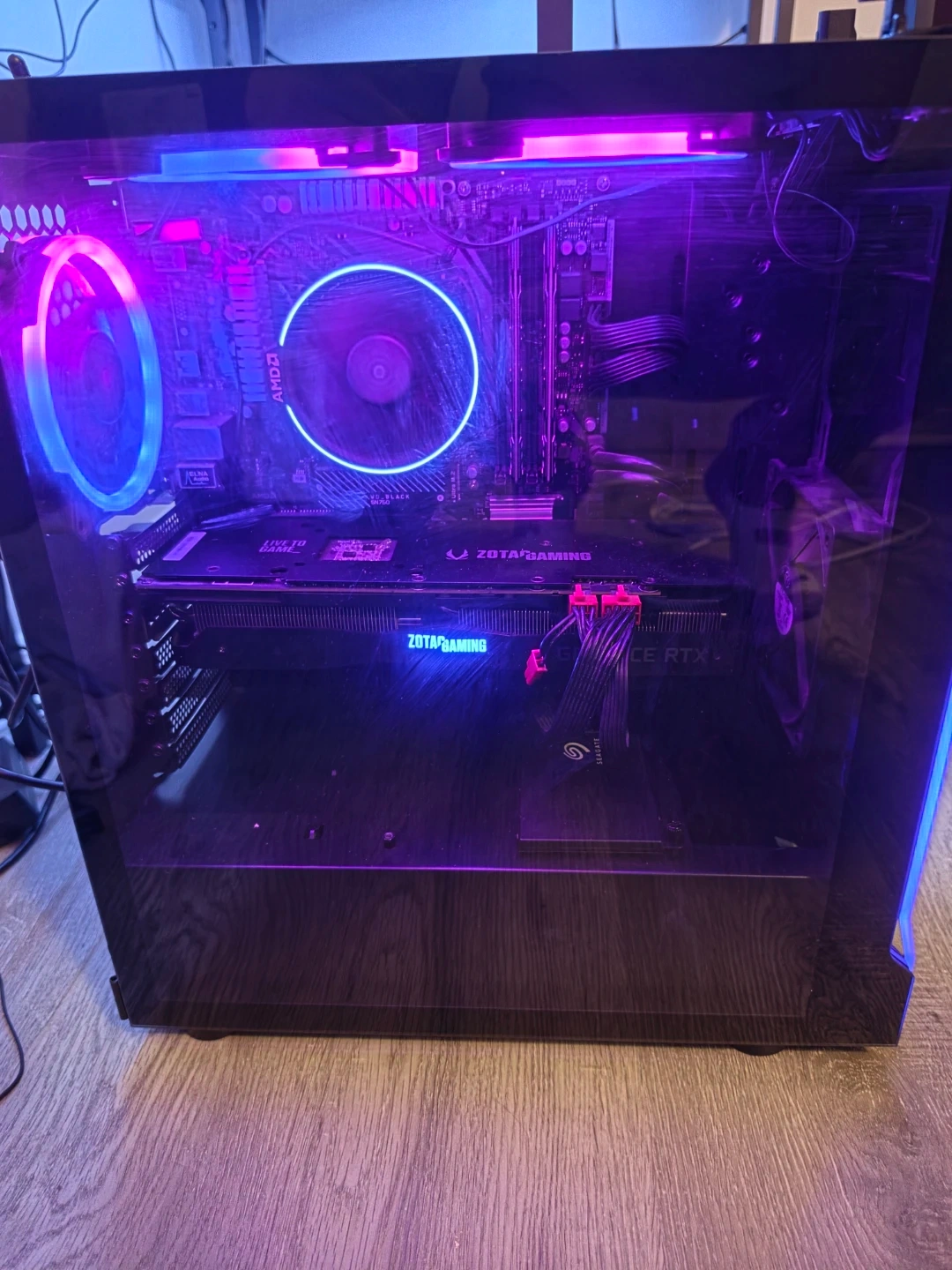 Custom built gaming PC featuring an AMD Ryzen 7 2700 processor and an NVIDIA GeForce RTX 2060 super 8gb graphics card. It comes with 16GB of RAM and an 750 SSD for fast storage. The case has customizable RGB lighting.