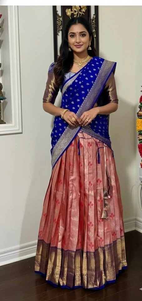 Pure Kanchipuram Pattu Lehenga with Half Saree - Adult Size