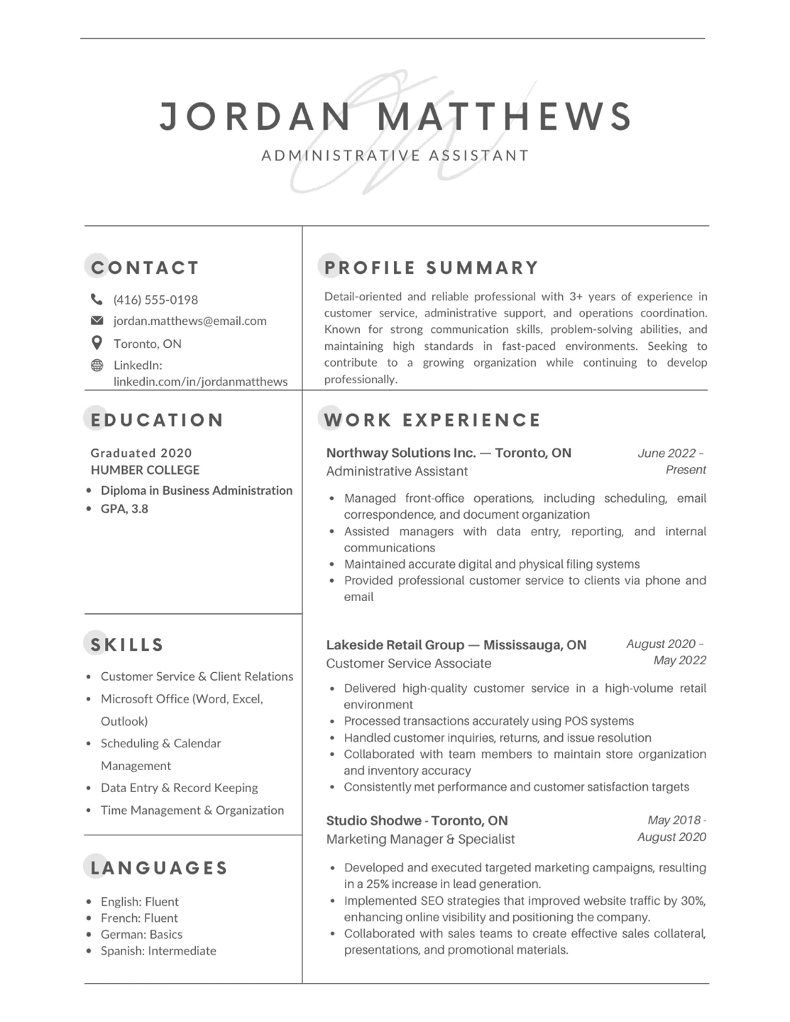 This listing is for a resume template, designed for professionals seeking roles such as Office Coordinator or Administrative Assistant. It highlights skills in customer service, scheduling, and office management. The template includes sections for education, language proficiency, and work experience. Perfect for job seekers in administrative fields!