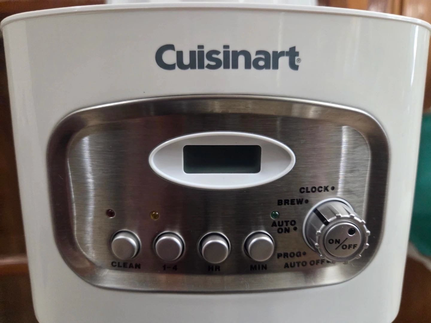 This Cuisinart coffeemaker brews up to 12 cups (1.8 L). It offers 24-hour advance brew start, brew pause, and programmable auto shutoff. A charcoal filter ensures pure coffee flavour.