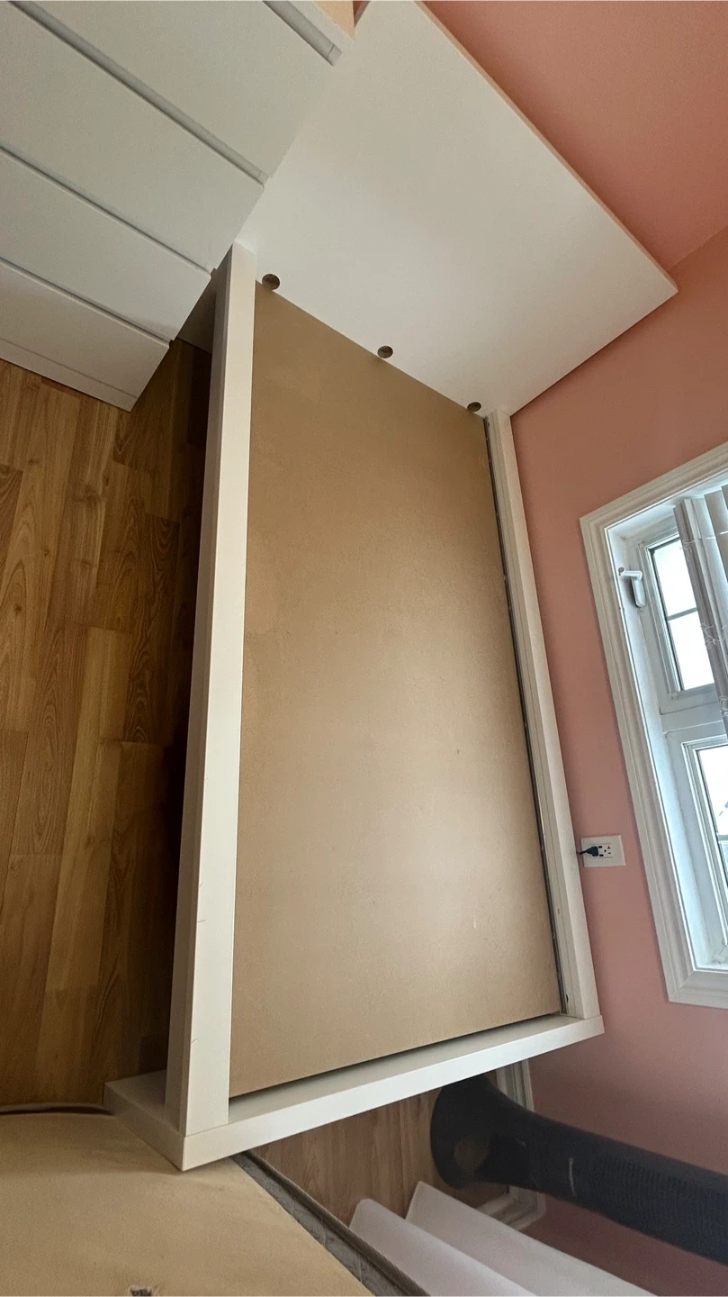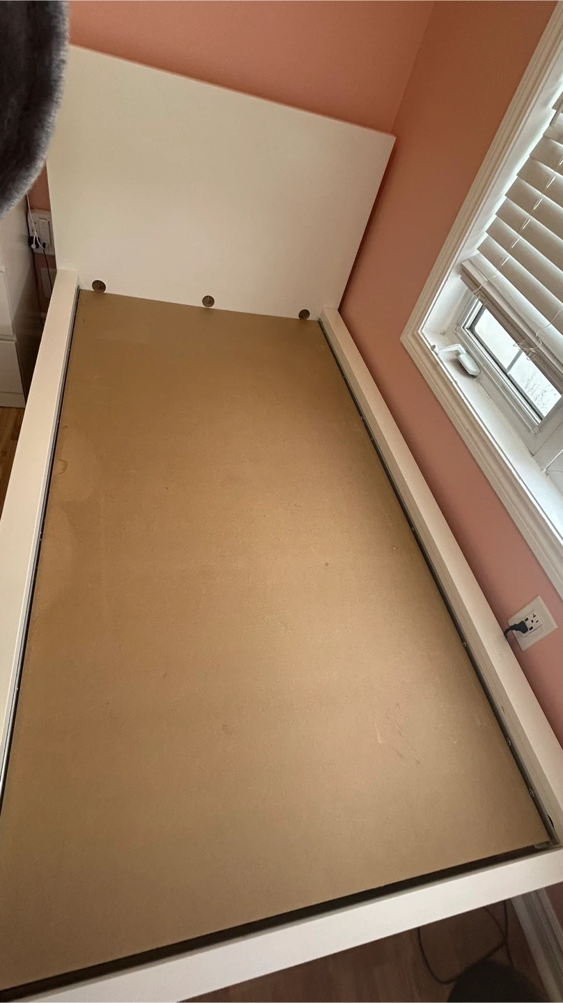 White twin bed frame with a sturdy composite wood base. This bed frame is made of painted wood and composite materials. It's a great choice for a child's room or guest bedroom!