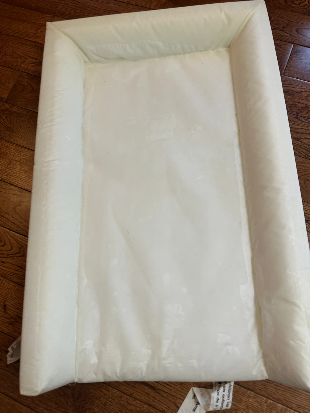 A padded changing mat with raised sides for safety. Water-resistant surface. Easy to wipe clean. Great for changing babies on the go!