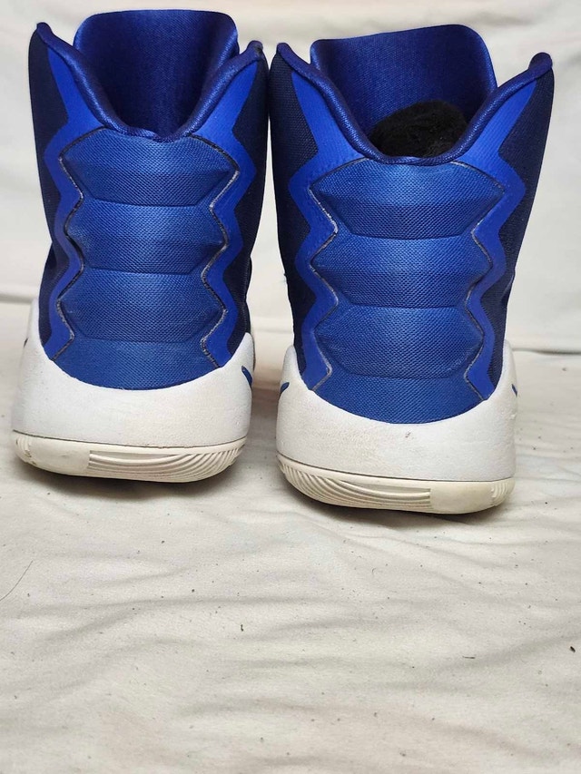 Selling a pair of Nike Zoom Hyperdunk basketball shoes in men's size 9.5 US. These shoes are in used condition, as you can see from the photos. They still have plenty of life left for the court or casual wear. Brand: Nike, Model: Zoom Hyperdunk, Size: Men's 9.5 US, Colour: Blue. Why not give these cool kicks a new home? They're waiting to help you make your next game-winning shot! If the ad's up, they're still available!
