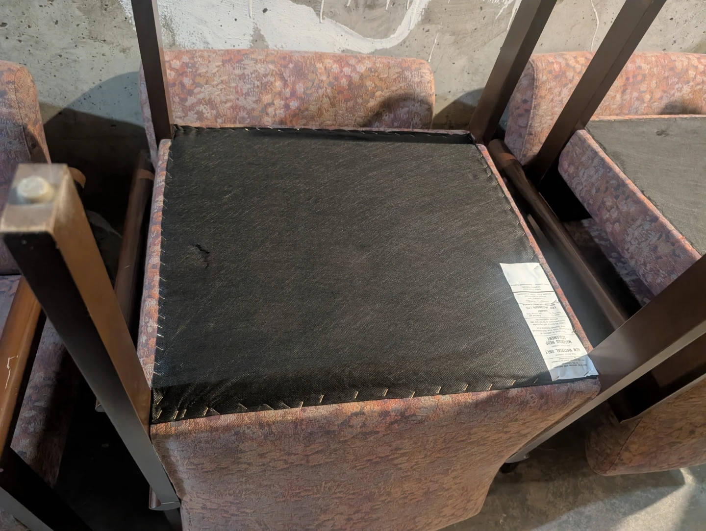 Armchair with patterned fabric upholstery