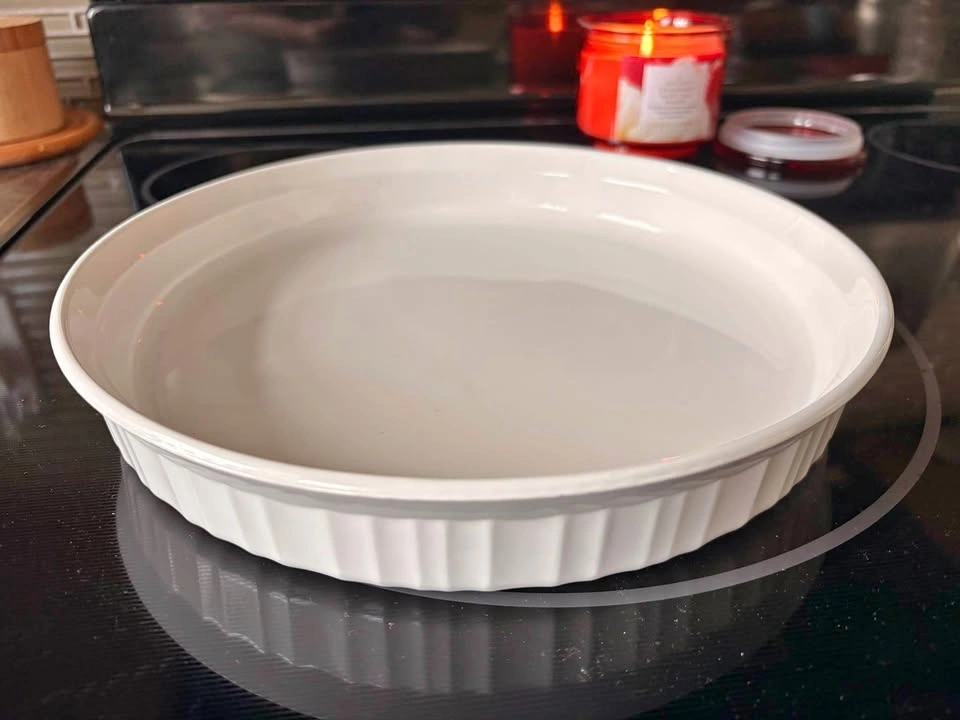 Vintage Corning Ware French White F-3-B 10-inch round quiche or pie baking dish. Safe for oven and microwave use. Pickup Evanston NW.
