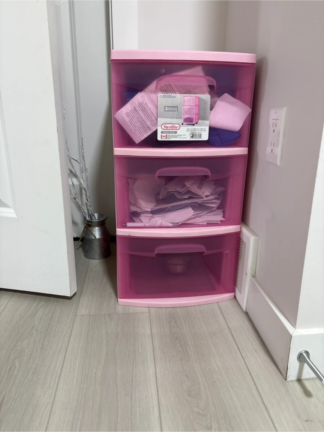 Buy & SellSterilite 3-Drawer Storage UnitSterilite 3-Drawer Storage Unit$19This Sterilite storage unit has three drawers. It's made of plastic and comes in a pink colour. Great for organizing small items!WHERE TO MEETCheck LocationView MapSELLERBDPBayside100 reviews0 chats·0 favorites·7 viewsSEND CHAT TO SELLERHi BDP! I’m interested in your listing.Hi BDP! I’m interested in your listing.Get the Karrot app to chatSign In to chat