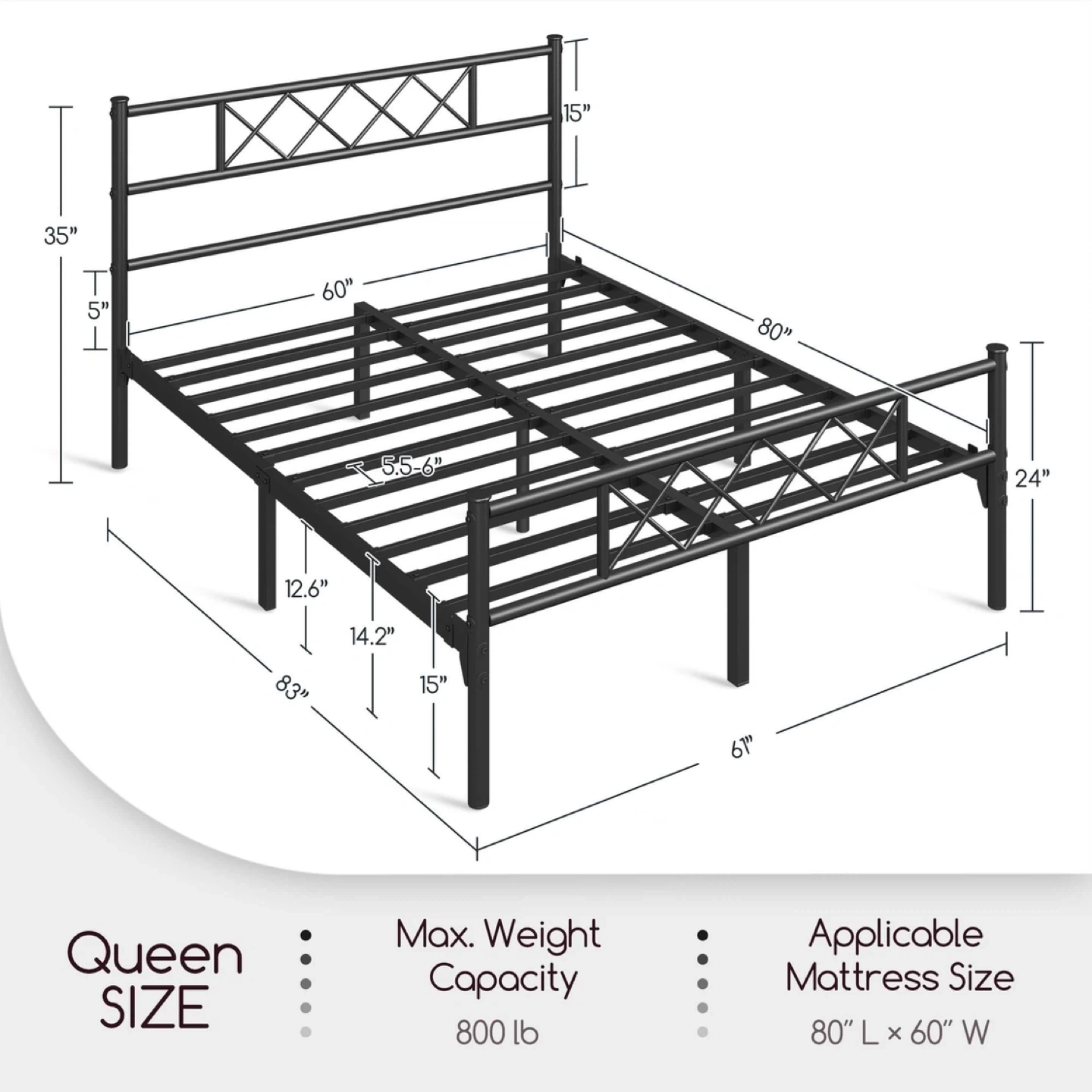 Queen Silver Metal Bed Frame with Headboard and Slats