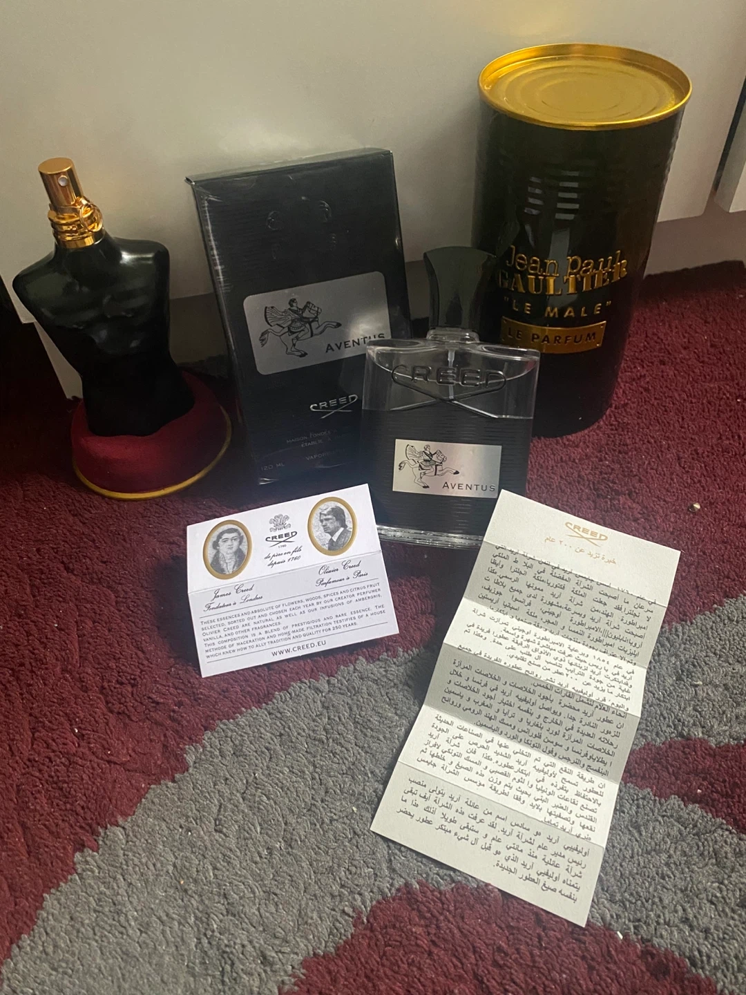 This is the Creed Aventus Eau de Parfum. It's a 120ml bottle and comes with the original box. The fragrance's creation is rooted in a blend of prestigious and rare essences.