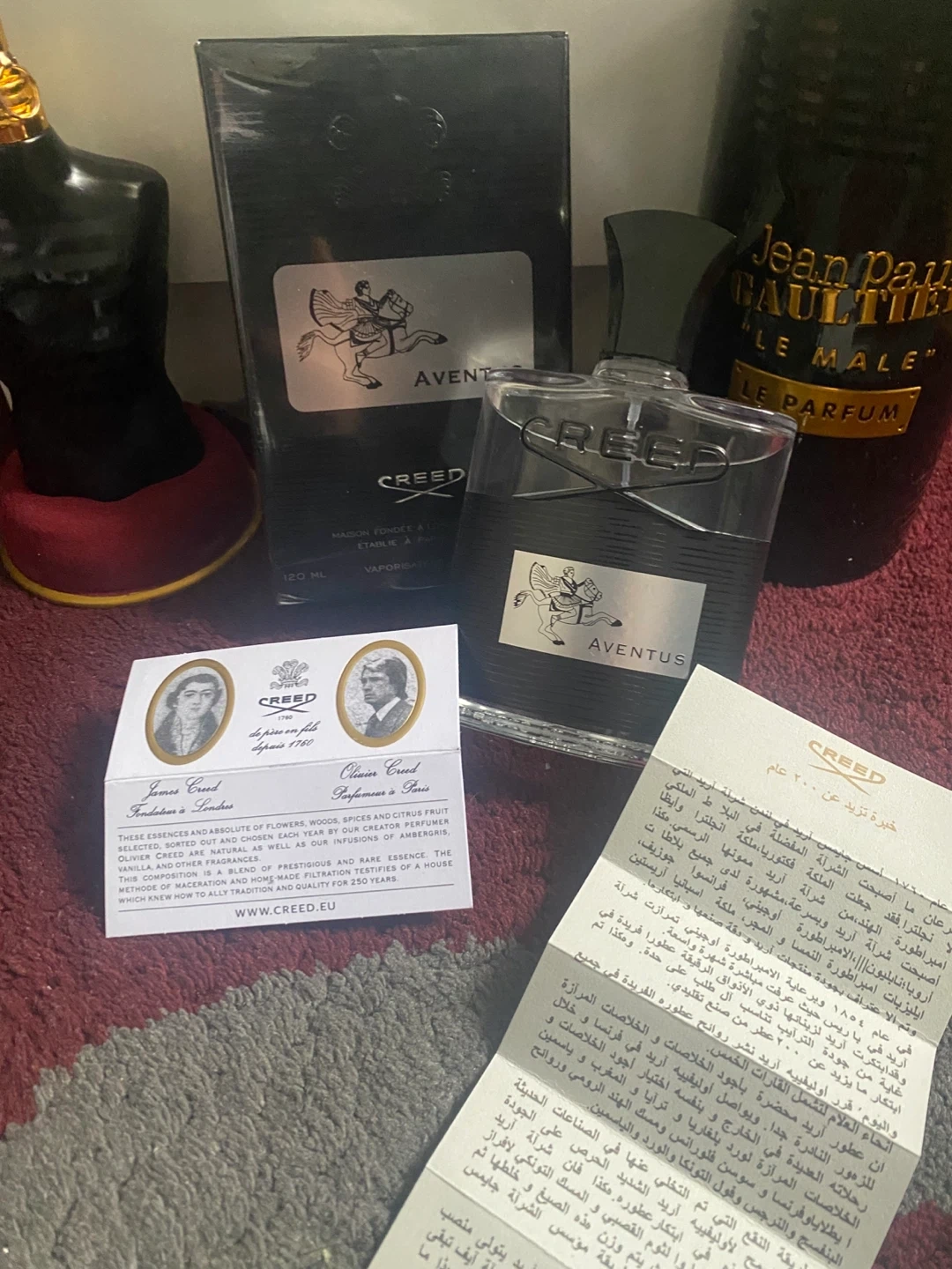 This is the Creed Aventus Eau de Parfum. It's a 120ml bottle and comes with the original box. The fragrance's creation is rooted in a blend of prestigious and rare essences.