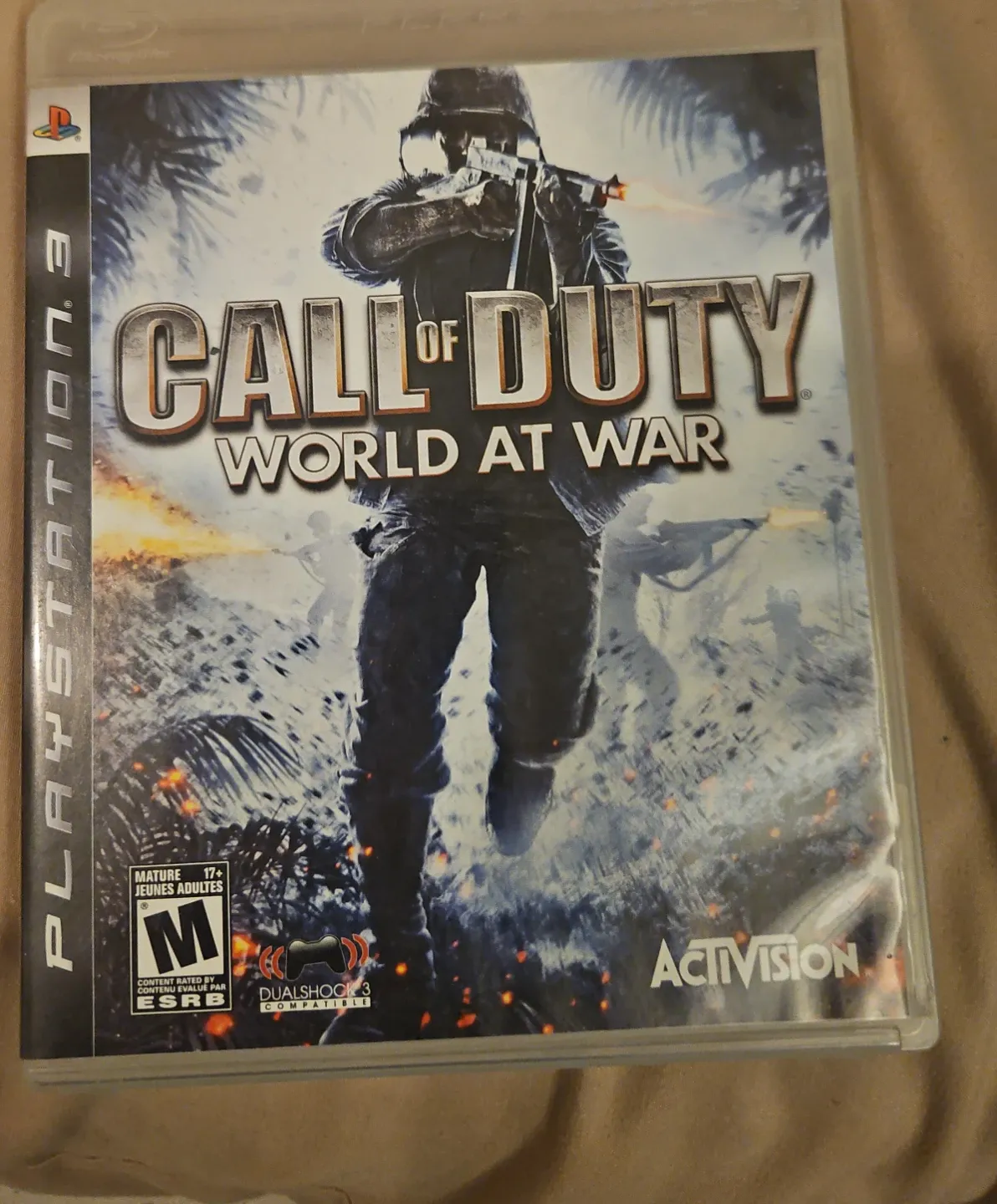 This is the Call of Duty: World at War game for PlayStation 3. It's compatible with DualShock 3 controllers. The game is rated M for Mature.