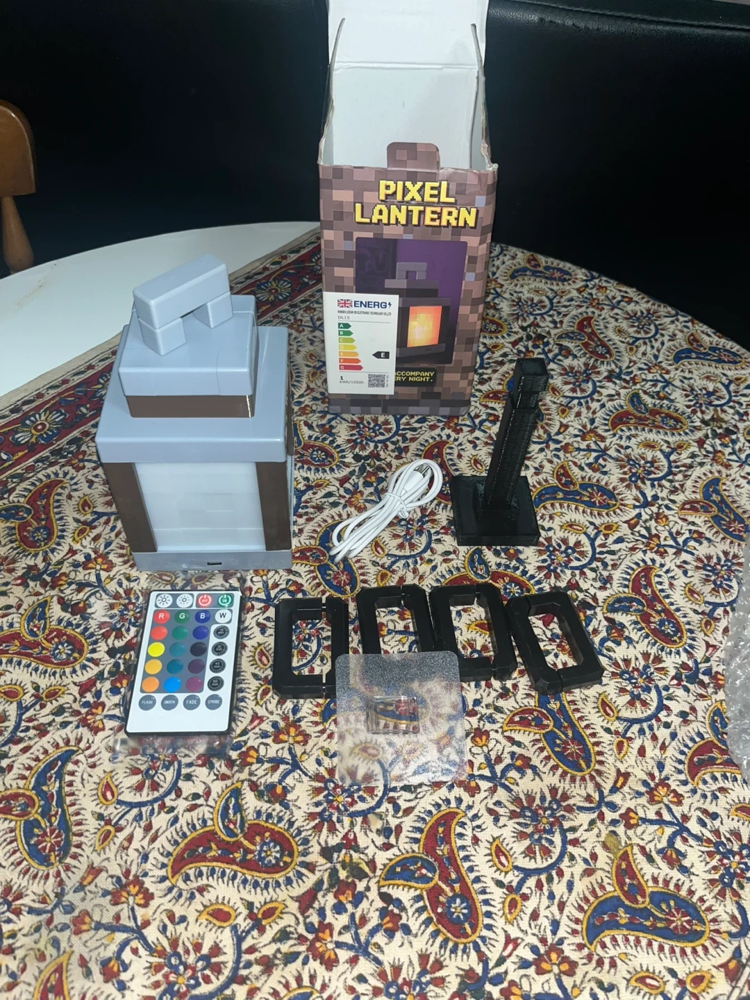 Pixel Lantern Lamp with remote control. Multiple colour options. This light is inspired by video games. "May it accompany you every night."