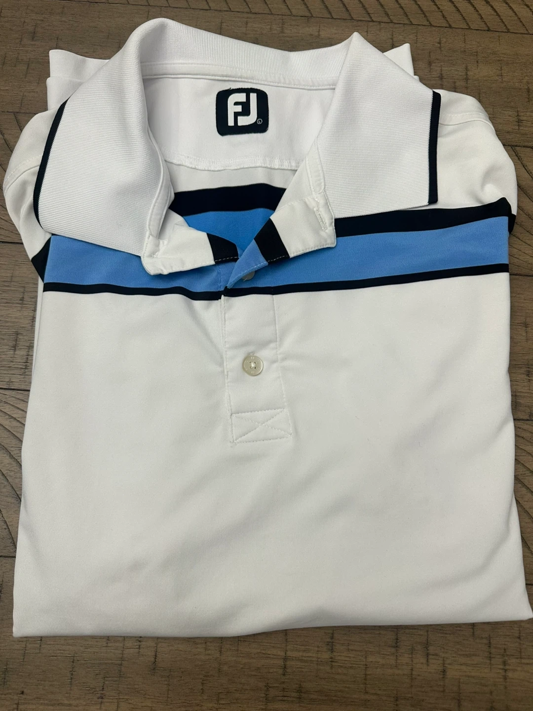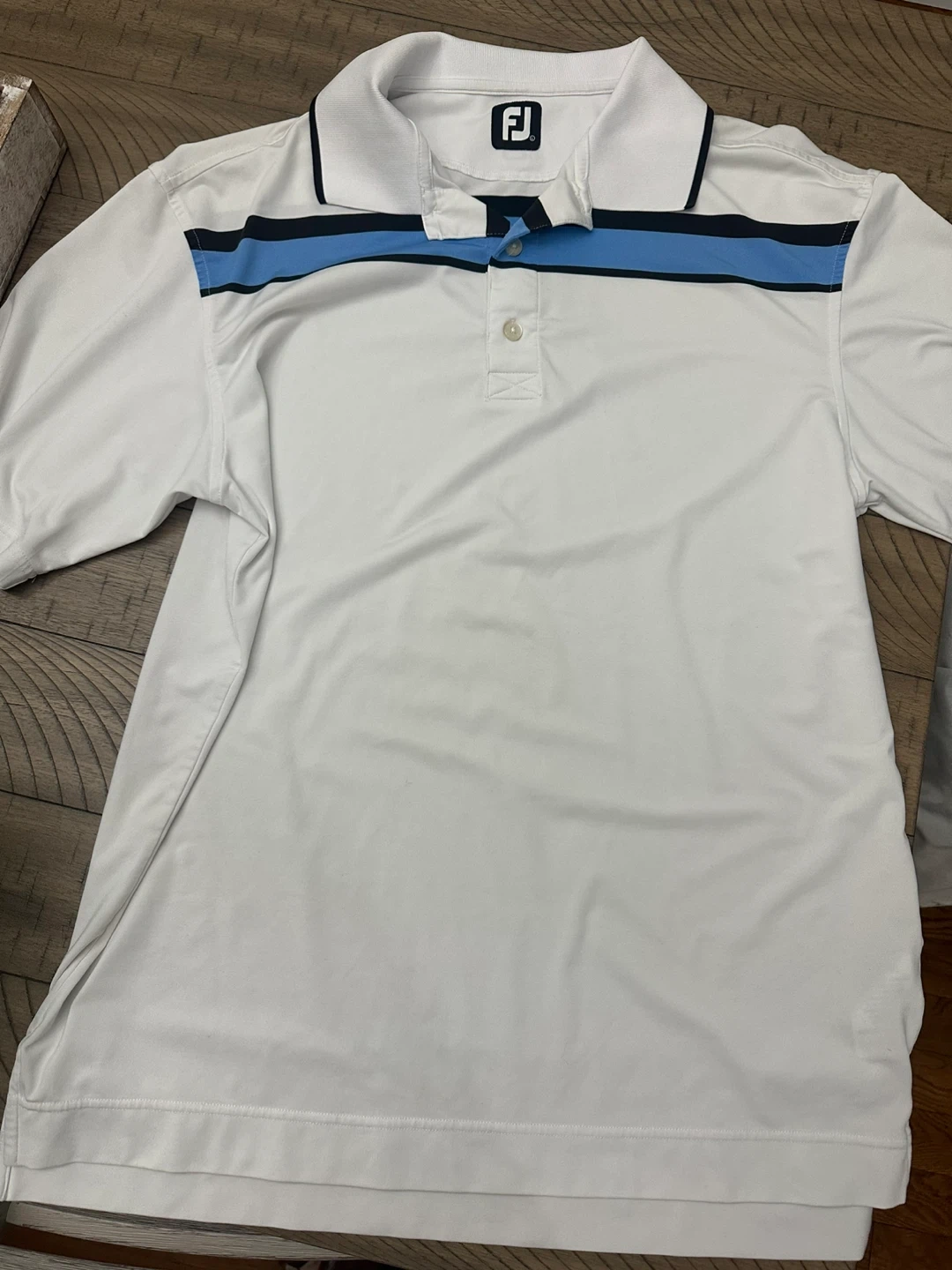 Buy & SellFootJoy large FJ Golf Polo ShirtFootJoy large FJ Golf Polo Shirt$15White FootJoy golf polo shirt with blue and black stripe detail across the chest. Size large. Breathable fabric for comfort on the course. Size largeConditionLike newBrandFootJoyWHERE TO MEETCheck LocationView MapSELLERverifiedAliceHeadon Forest1095 reviews0 chats·0 favorites·7 viewsSEND CHAT TO SELLERHi Alice! I’m interested in your listing.Hi Alice! I’m interested in your listing.Get the Karrot app to chatSign In to chat