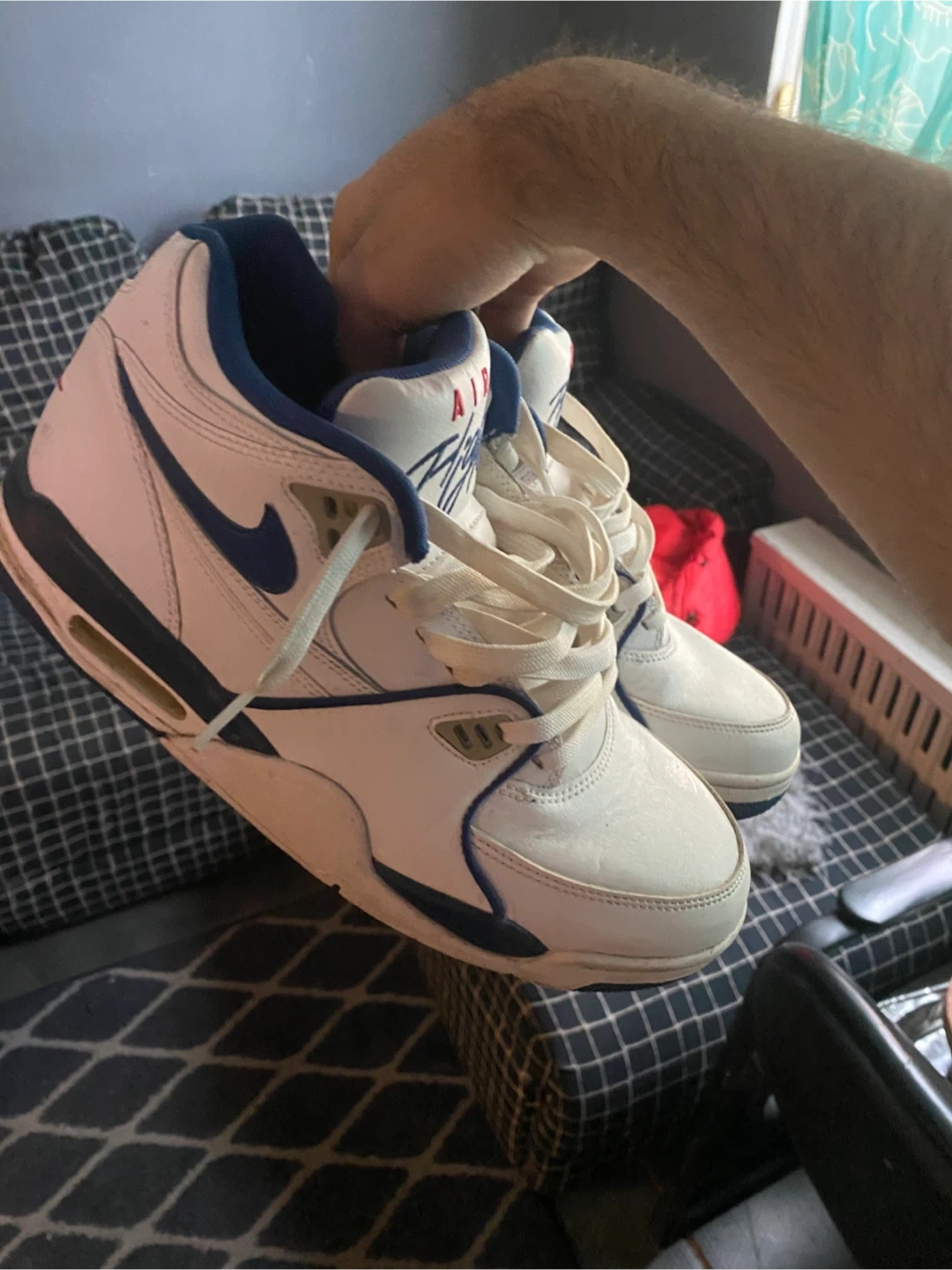 Selling a pair of Nike Air Flight 89 in the 'Dark Royal Blue' colourway. They are size 9.5. These shoes are in great condition and ready for a new owner!