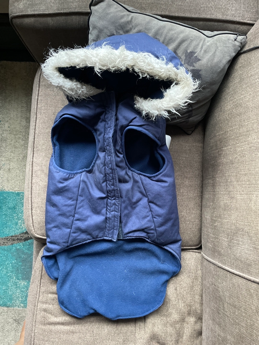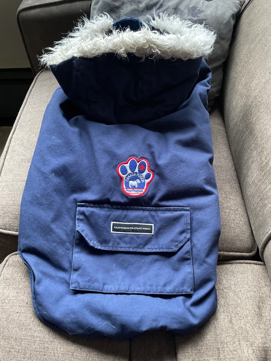 Buy & SellThick Canada Pooch Dog ParkaThick Canada Pooch Dog Parka$20Navy blue dog coat. Features a faux fur-trimmed hood and a front pouch. Size medium/large, fit 60lb.ConditionGoodWHERE TO MEETKing & DufferinView MapSELLERAvaParkdale675 reviews0 chats·3 favorites·46 viewsSEND CHAT TO SELLERHi Ava! I’m interested in your listing.Hi Ava! I’m interested in your listing.Get the Karrot app to chatSign In to chat