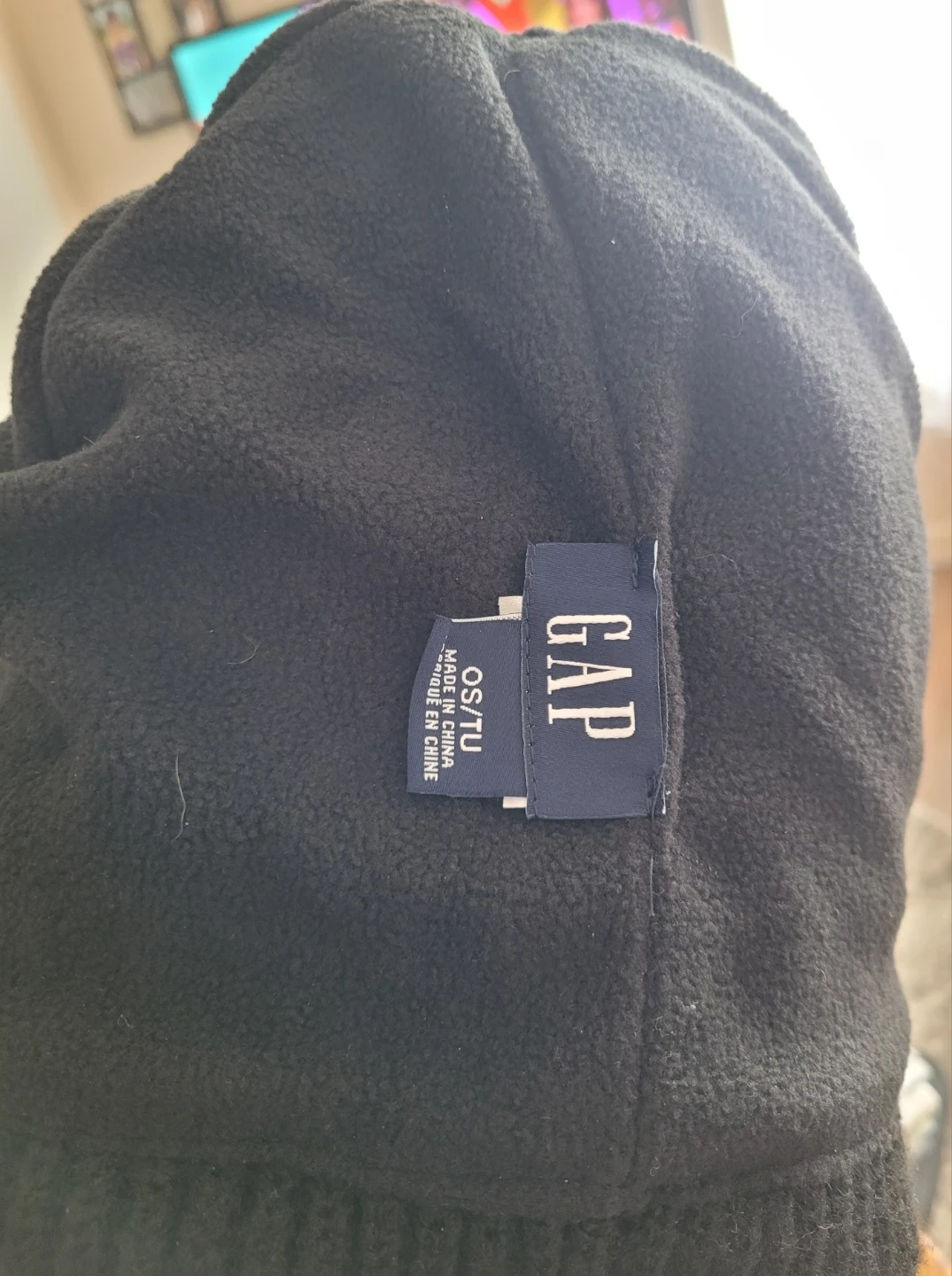 This is a Gap ribbed beanie in black. It's size OS/TU, meaning one size fits all. The material is soft and warm, perfect for keeping cozy in cooler weather!