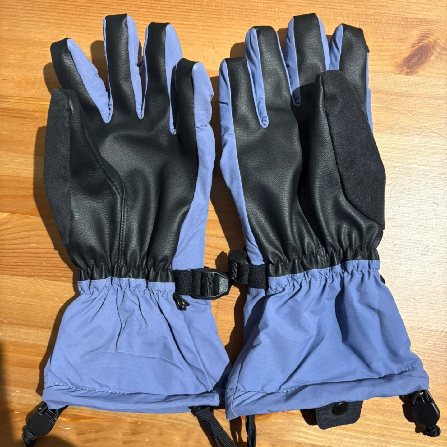 These are Womens Burton Profile gloves in Periwinkle (blue/purple) size M. They feature adjustable wrist straps and cinching cuffs to keep the snow out. Ideal for winter sports!
