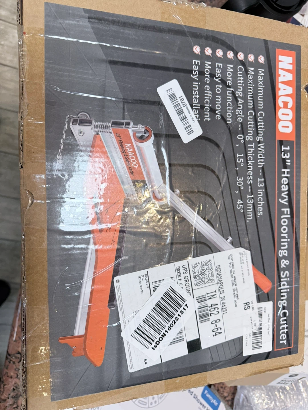 This NAACOO flooring and siding cutter is designed for maximum cutting width up to 13 inches. It offers easy installation, is efficient to use, and simple to move. The cutting angle can be set to 0°, 15°, 30°, or 45° for versatile cuts. This tool is useful for DIY flooring projects or professional renovations.