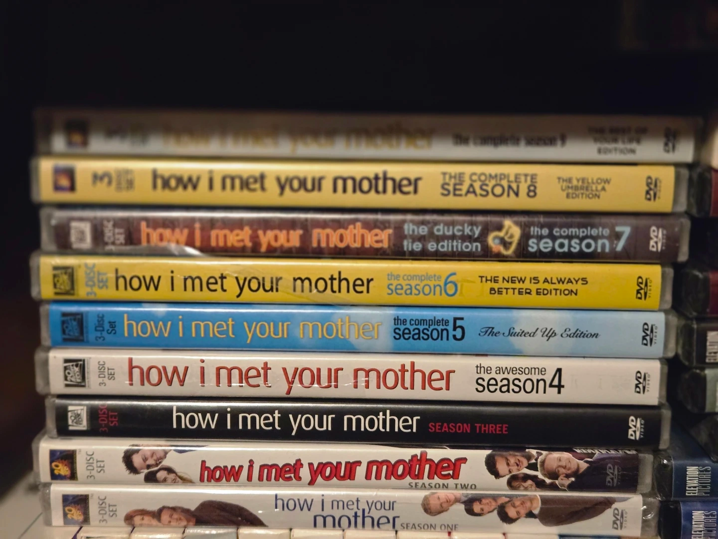 This is the complete DVD collection for How I Met Your Mother, covering seasons one through eight. Each season is a multi-disc set. The complete seasons are presented in their original broadcast order.
