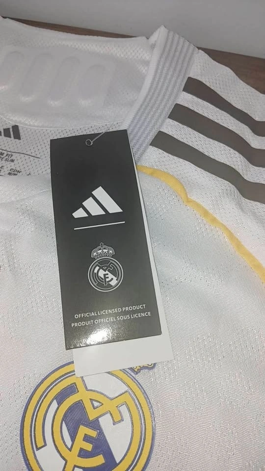 Clean white jersey with gold details, Emirates Fly Better sponsor, Real Madrid badge, and the FIFA Club World Champions patch. Looks fire in person — perfect for game days or just wearing out.