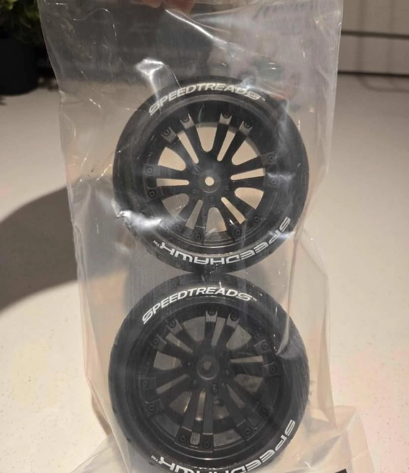 BNIB SpeedTreads SpeedHawks 1/10 scale tires, set of 4. I bought these for a Traxxas RustlerXL, but they will fit other trucks. Pick-up near Weston & Rutherford.