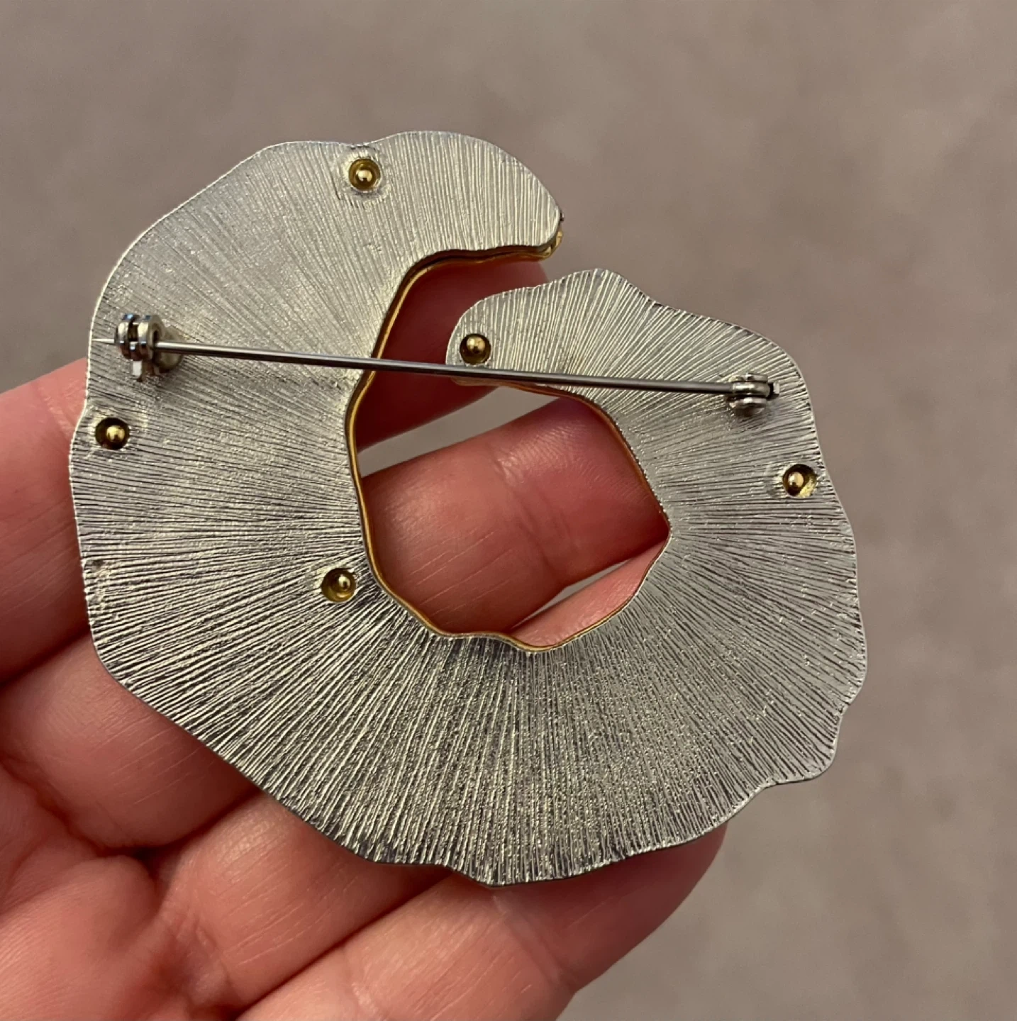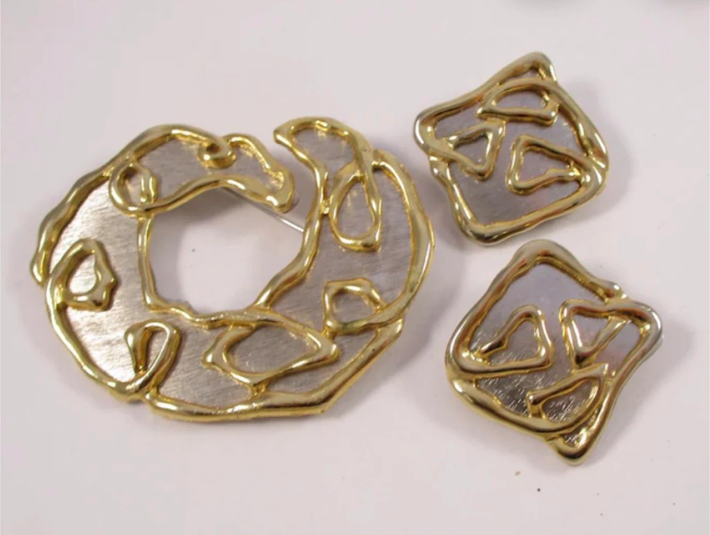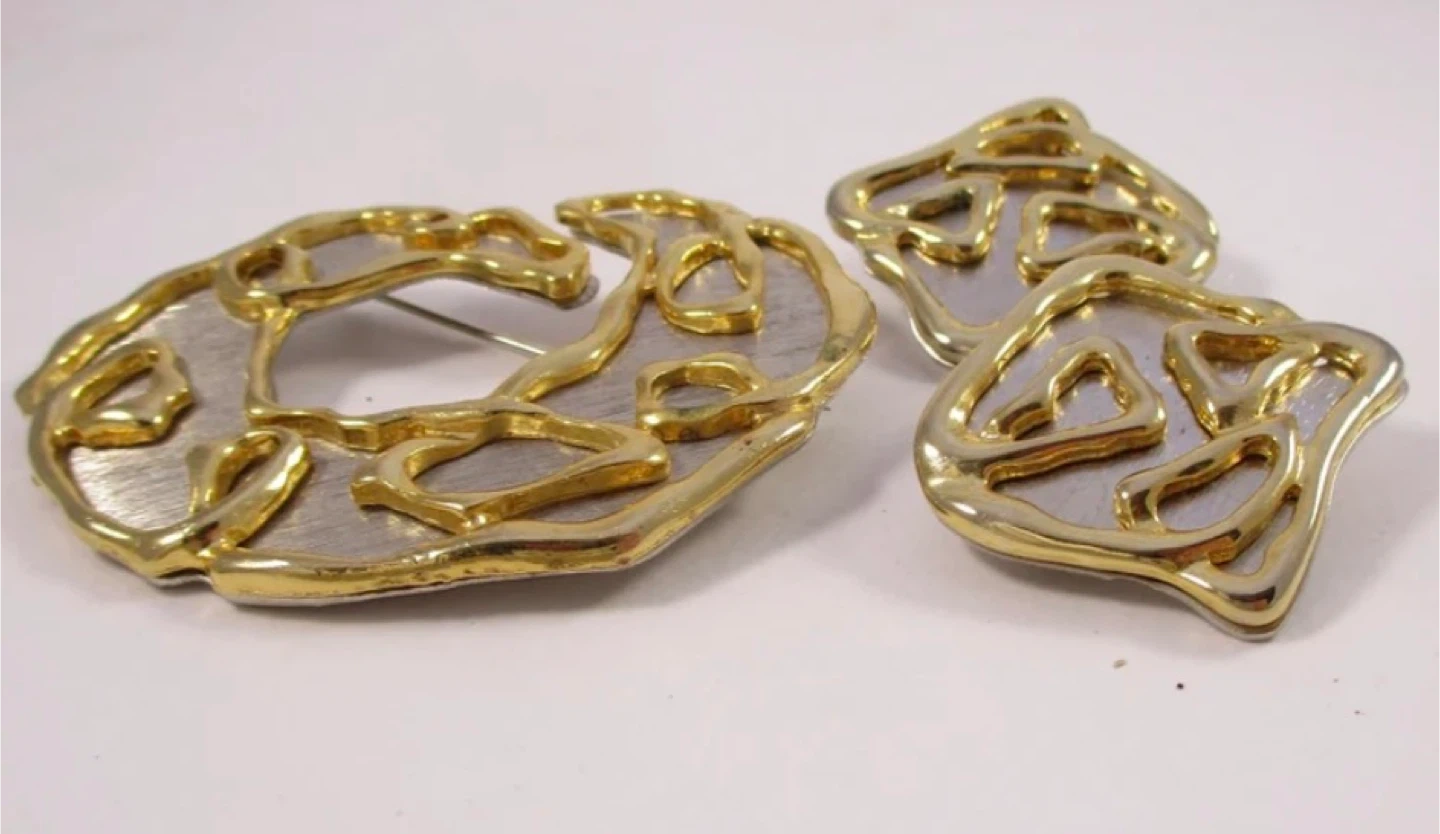 Lovely vintage Park Lane brooch and earrings: 1980s Silver/Gold tone. The price is for the brooch and I am throwing in the earrings as they have been modified from the original clip on format to be worn as pierced earrings.