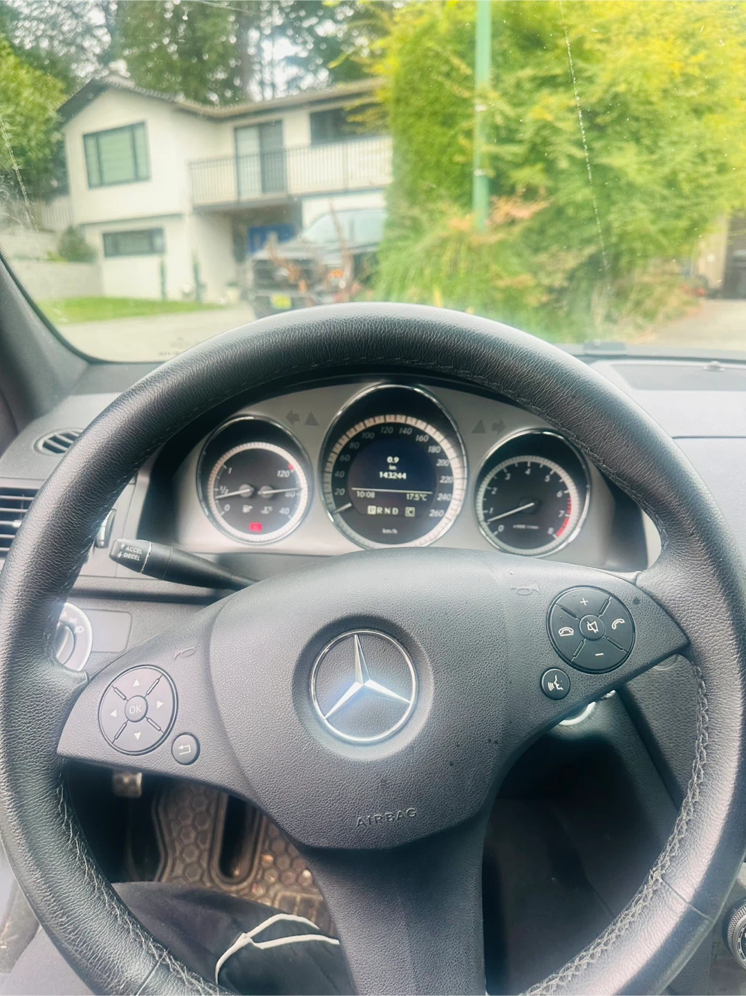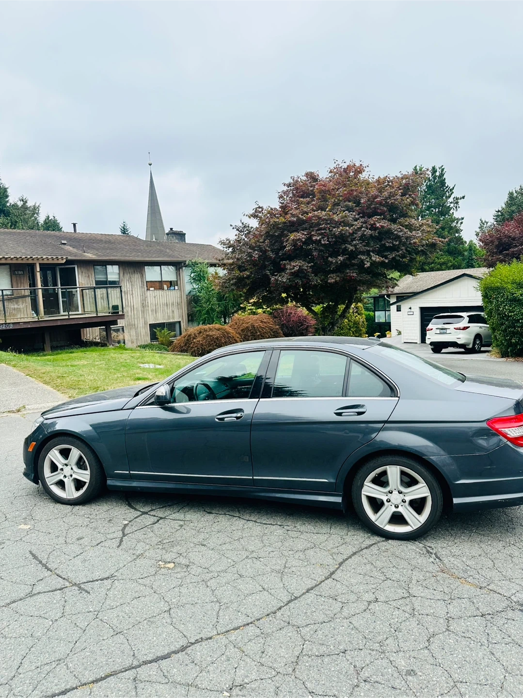 Dark grey Mercedes-Benz C 300 4MATIC sedan. This is a luxury compact executive car. It's a 4-door vehicle with a spacious interior. This sedan offers a comfortable ride and excellent handling.
