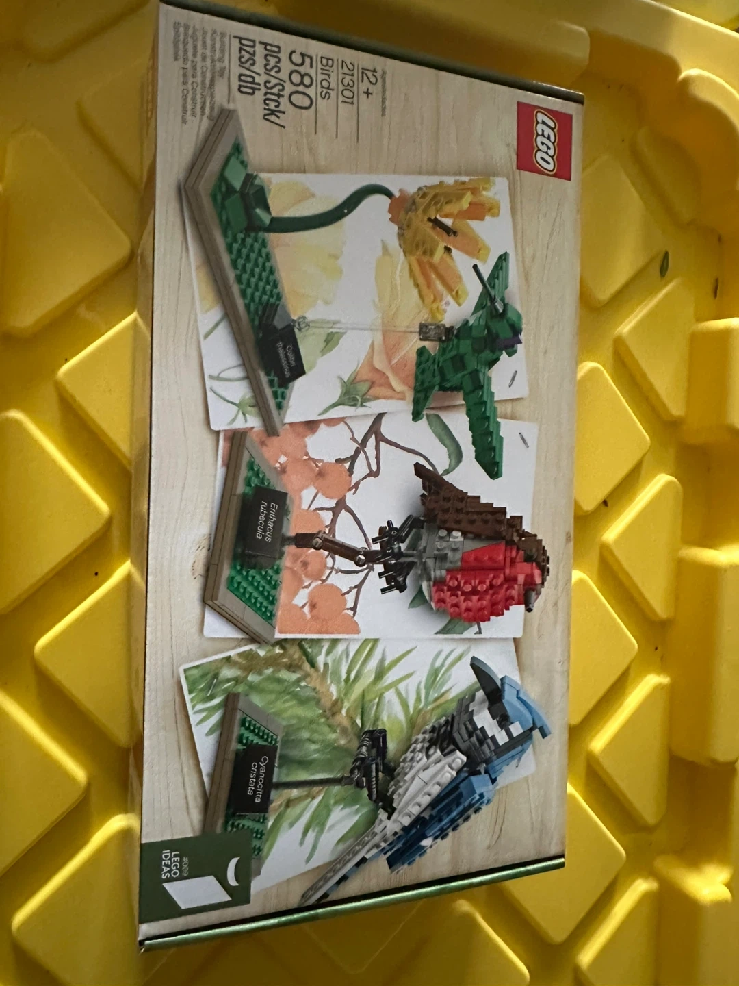 This LEGO Ideas set features three different bird models: a robin, a blue jay, and a hummingbird. It includes 580 pieces and is recommended for ages 12 and up. These models are great for display!