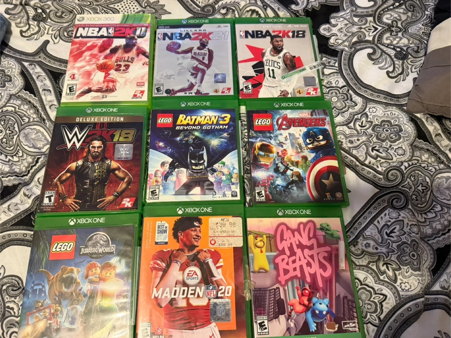 . games are included: NBA 2K18, WWE 2K18, LEGO Batman 3, LEGO Avengers, LEGO Jurassic World, Madden NFL 20, Gang Beasts, NBA 2K21 (