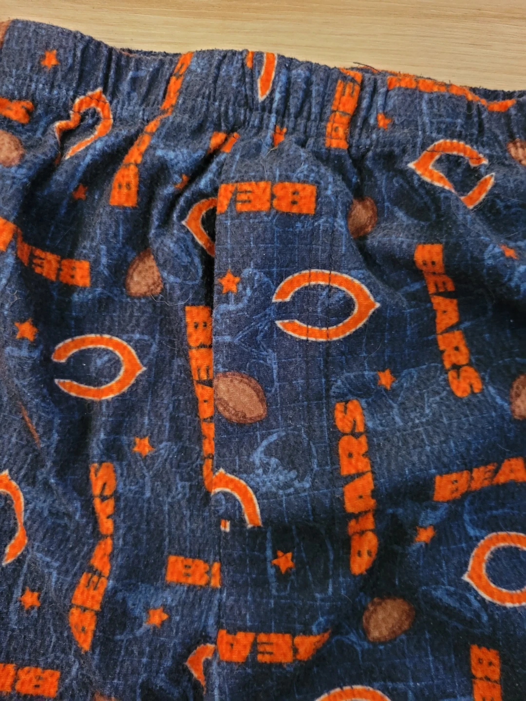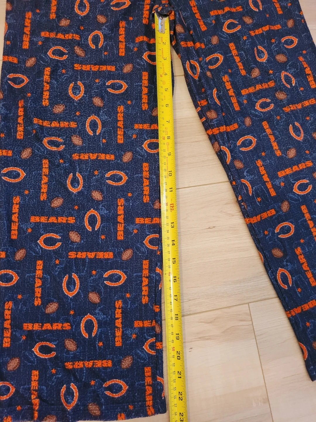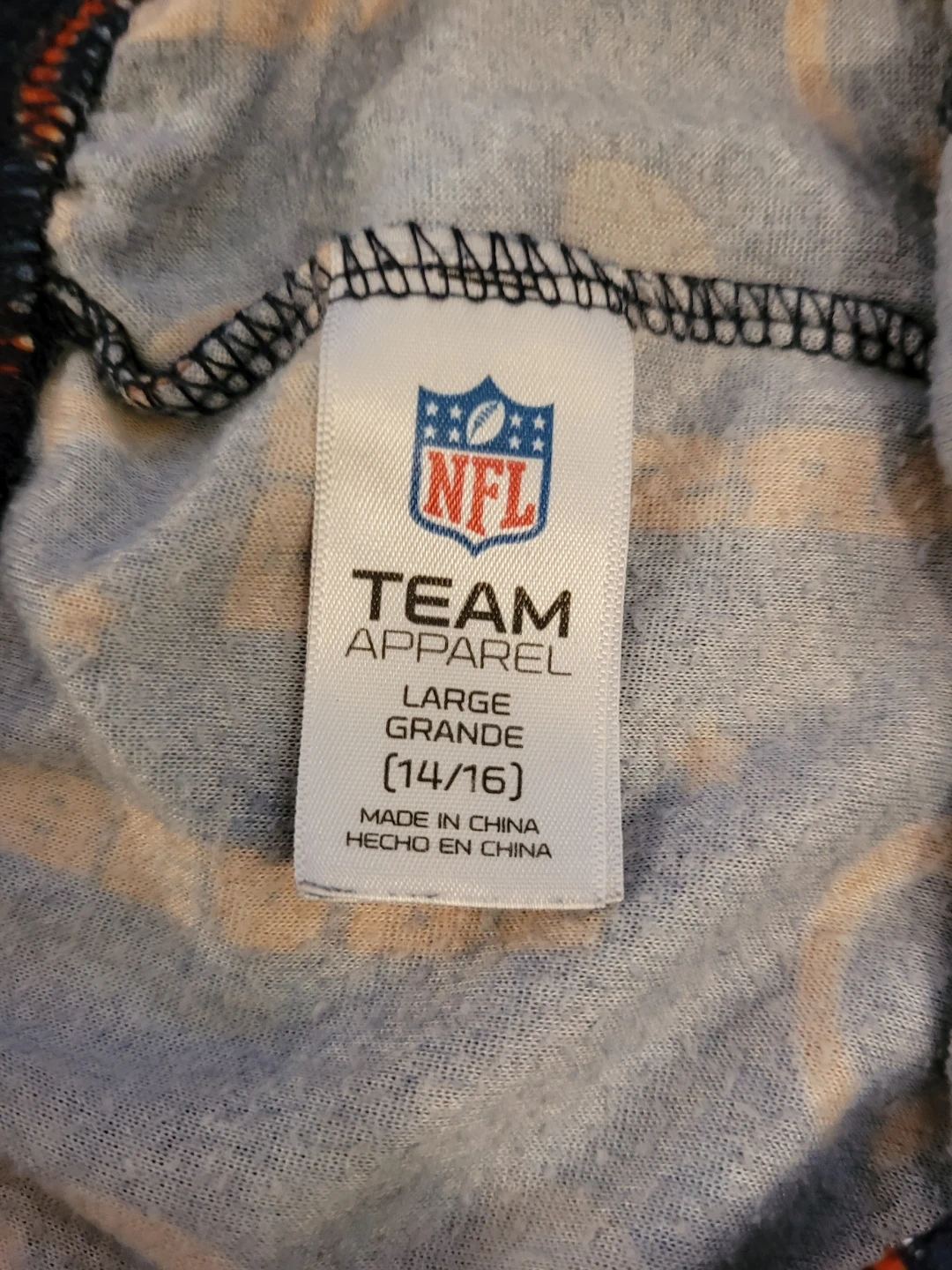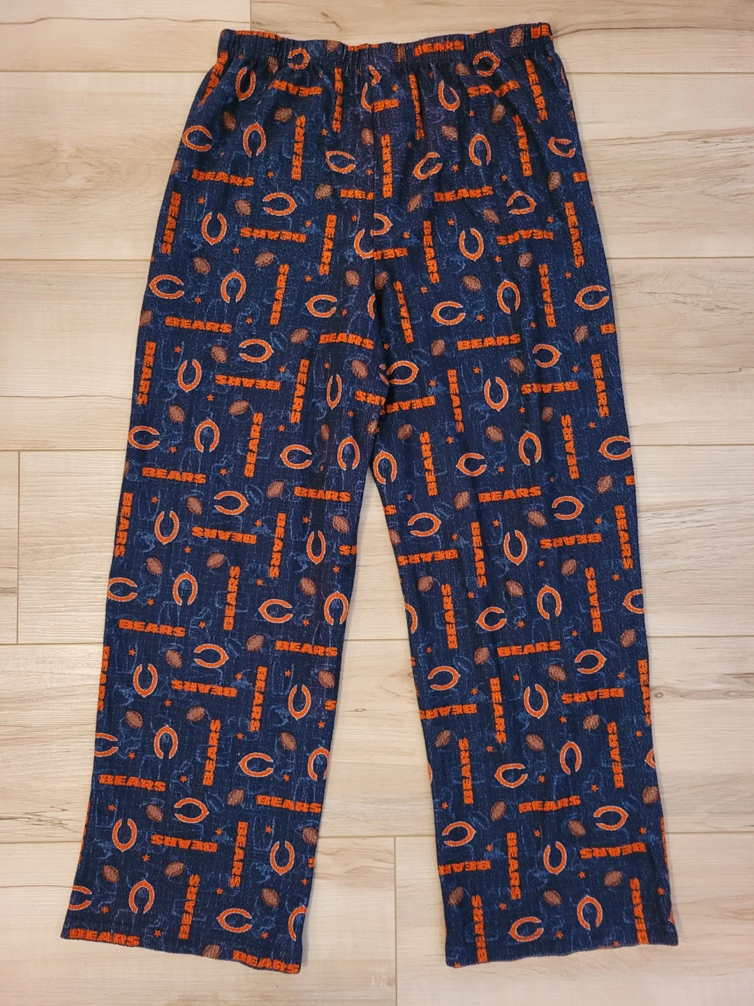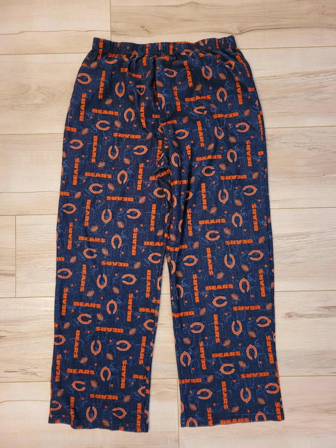 Team Apparel pajama pants in navy with a Chicago Bears all-over print. Size is youth size large (14/16). Good condition. 100% Polyester. Inseam approximately 23 inches.