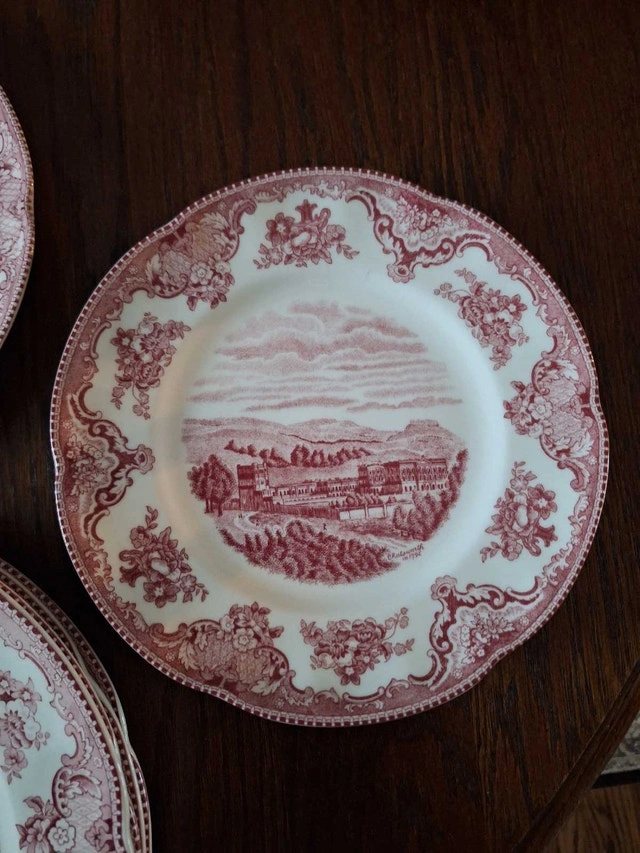 Selling a set of 13 Johnson Brothers Old Britain Castles plates. Includes 4 dinner plates, 6 salad plates (5 with accent border design), and 3 dessert plates. Asking $65 for the set. All plates are in like-new condition with no chips or cracks. Cash on curbside pickup only.