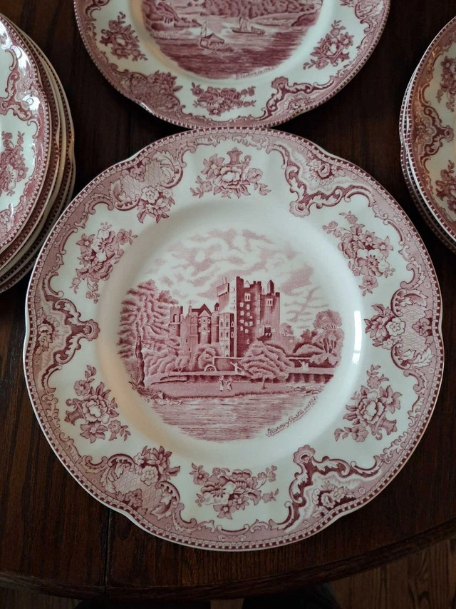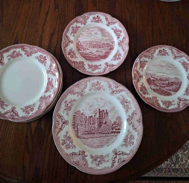 Selling a set of 13 Johnson Brothers Old Britain Castles plates. Includes 4 dinner plates, 6 salad plates (5 with accent border design), and 3 dessert plates. Asking $65 for the set. All plates are in like-new condition with no chips or cracks. Cash on curbside pickup only.
