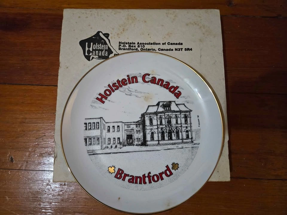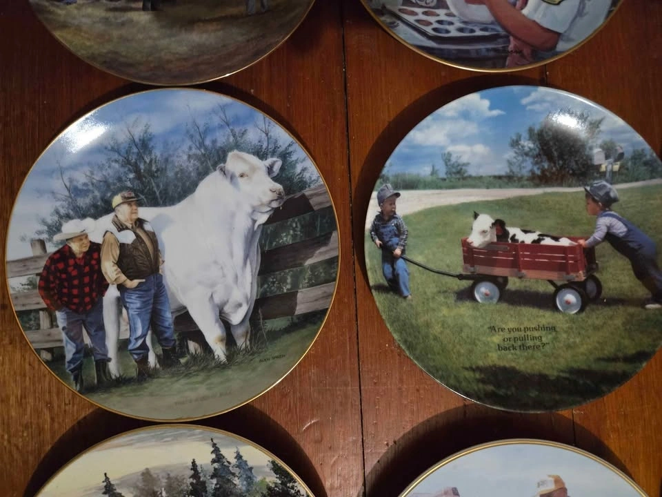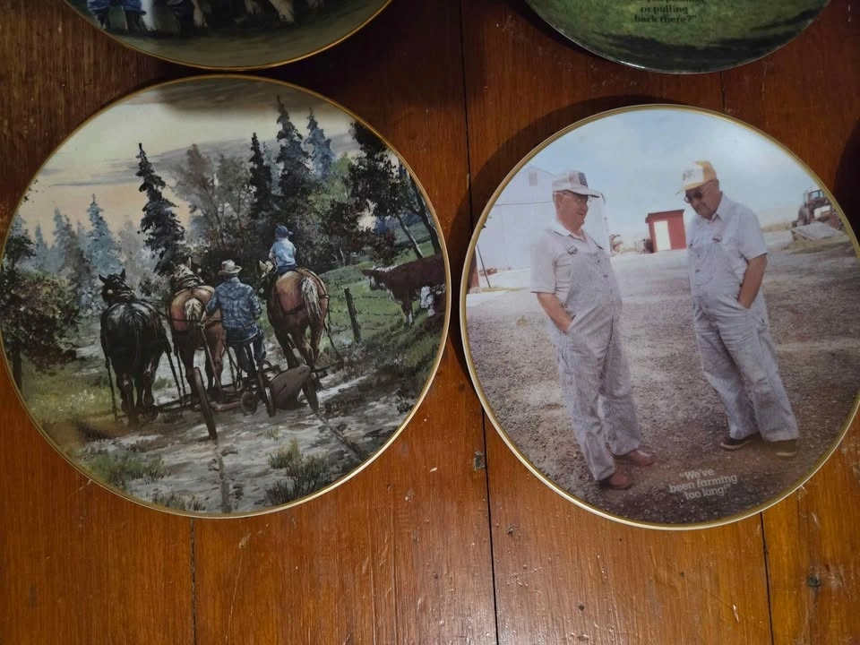 Collection of 14 farm-themed collector plates. Prices: Holstein Canada (with box) - $20, Delaval milker - $20, all others - $5 each. Take all 14 for $80. Pick up 4 miles south east of Tavistock.