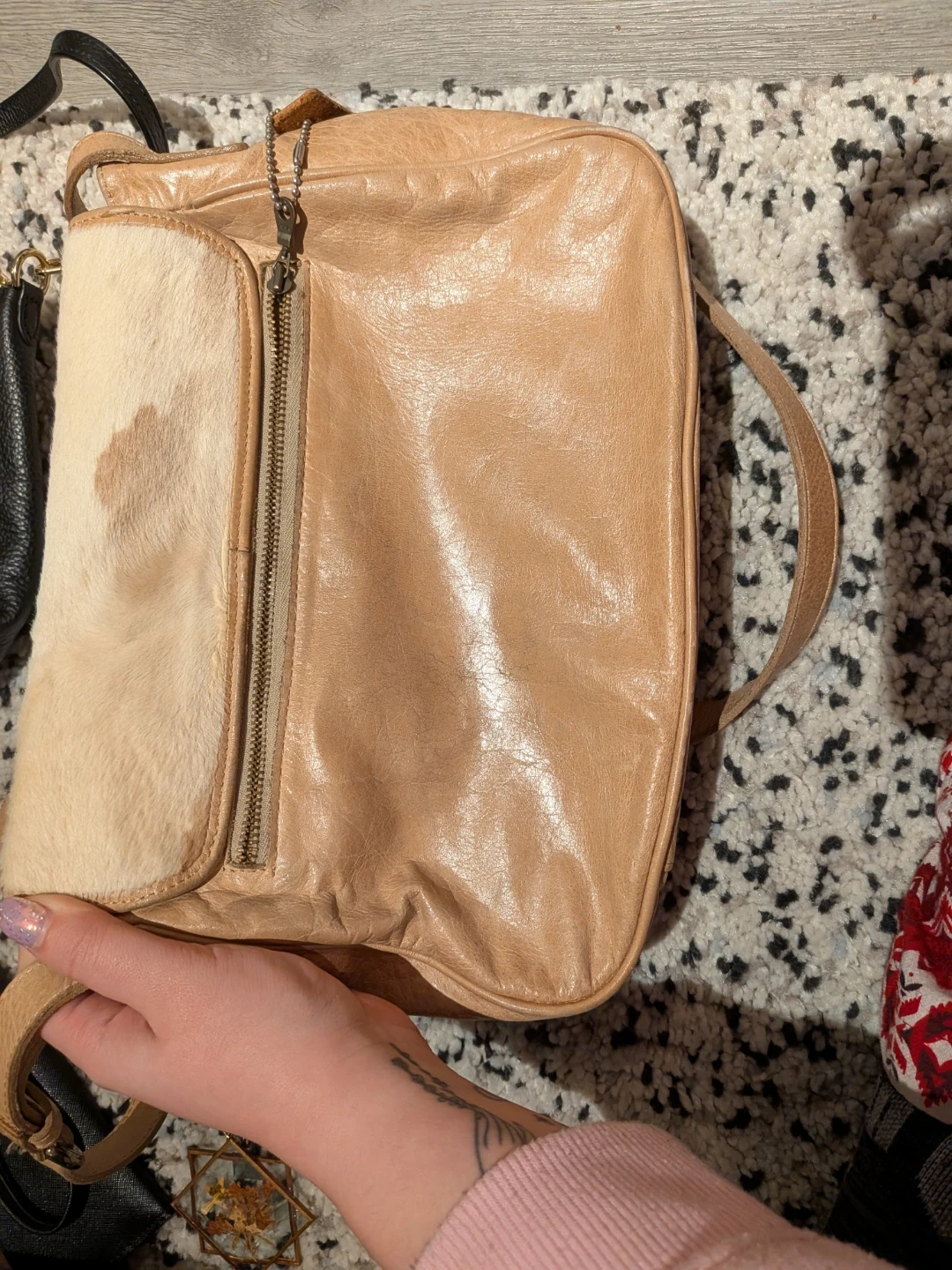 Tan and White Cowhide Shoulder Bag