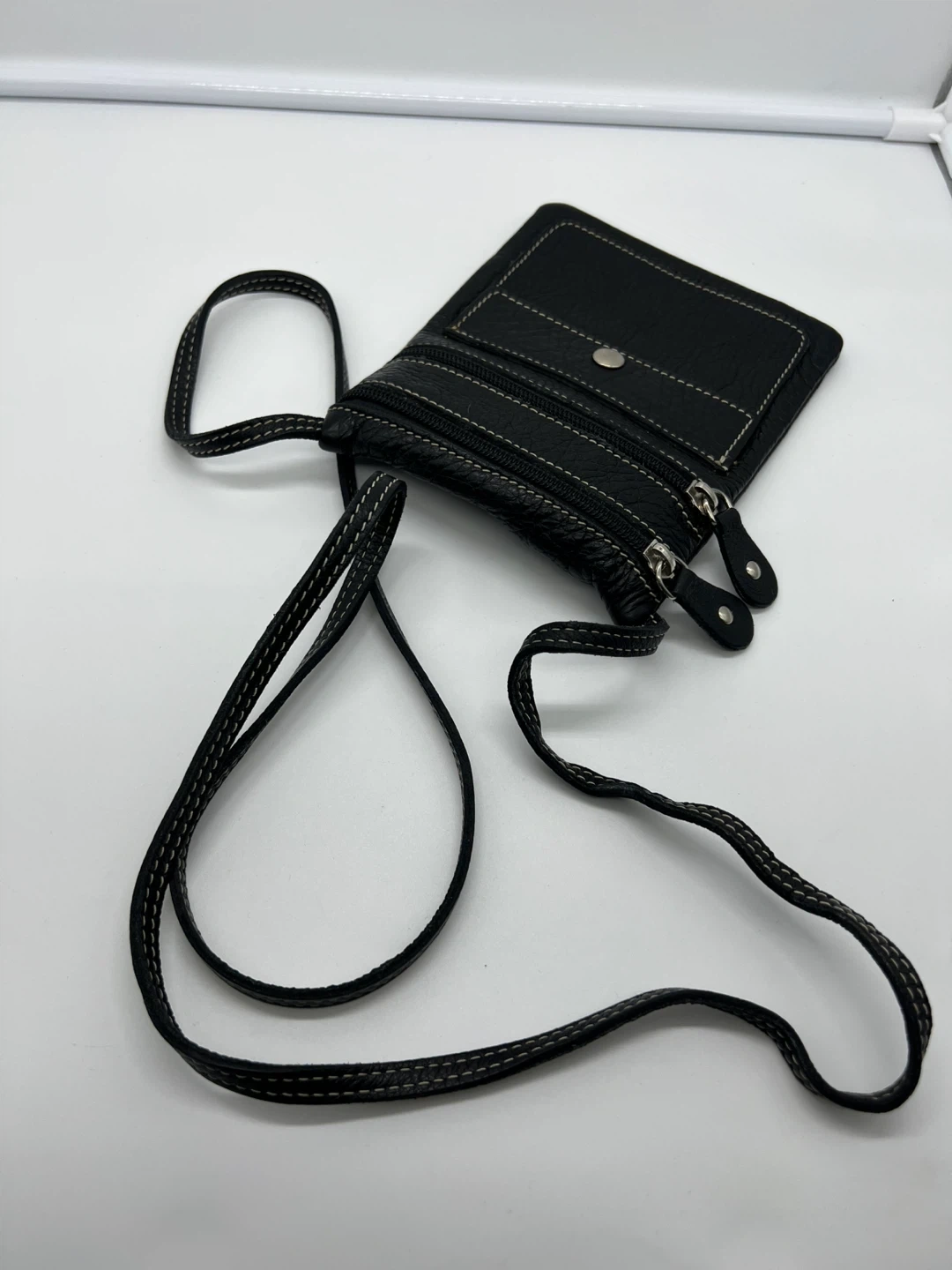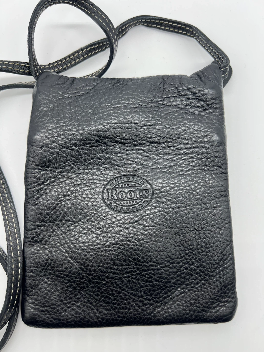 ROOTS Black Pebbled Leather Travel Crossbody Phone Bag Unisex