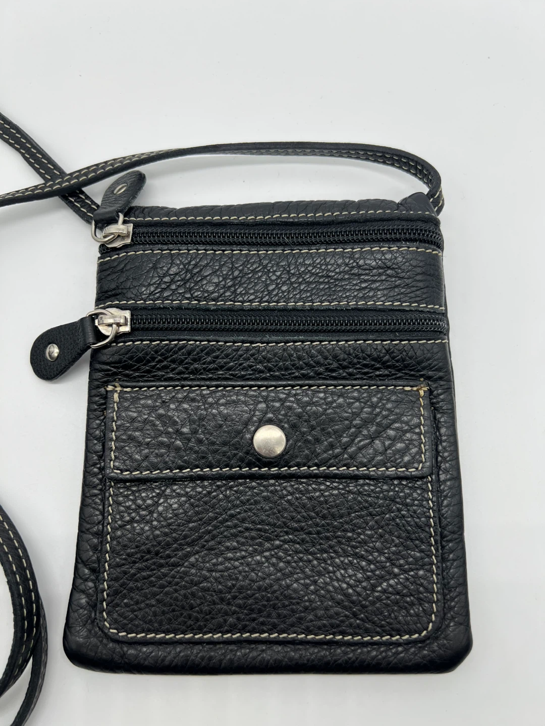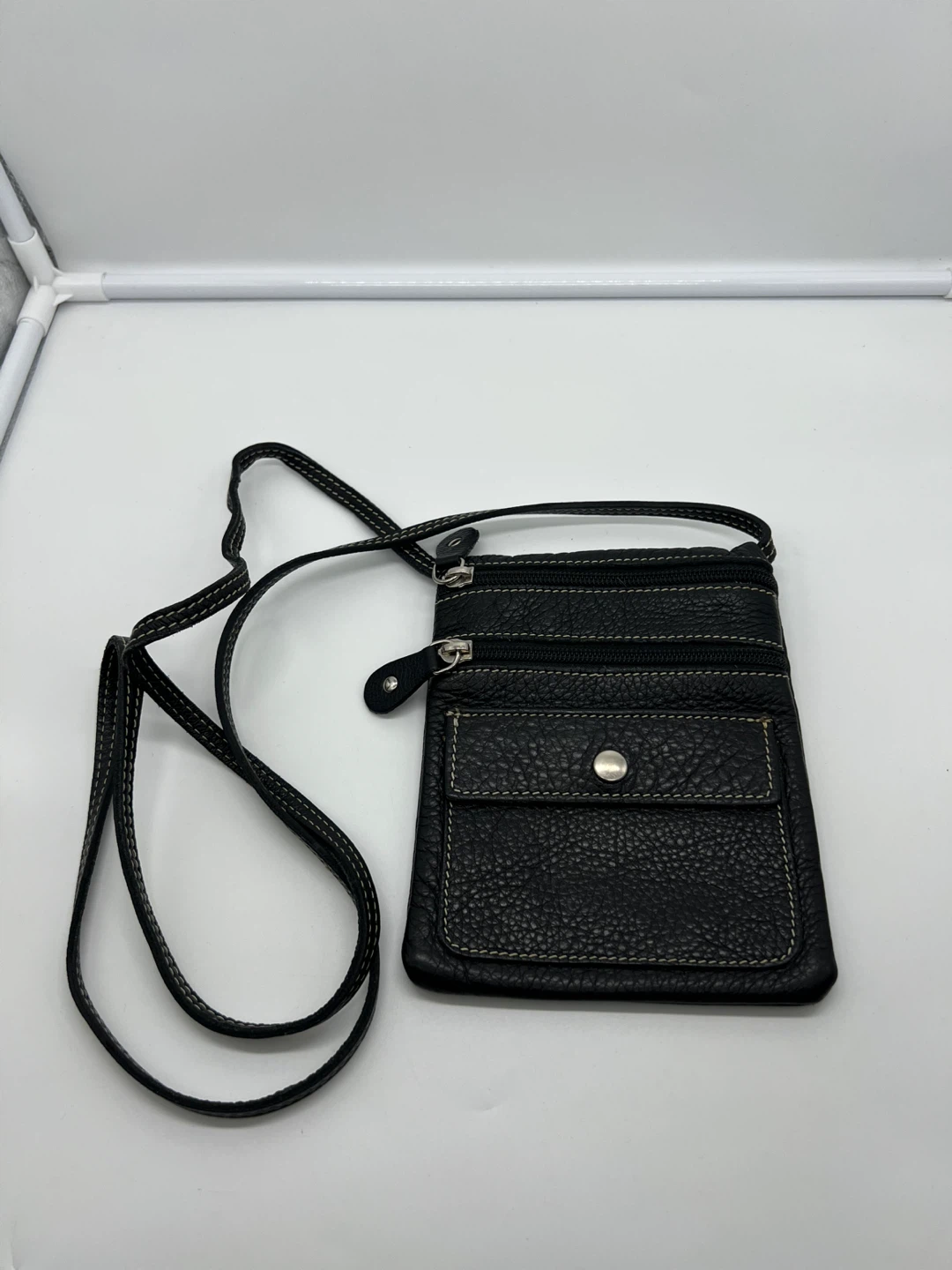 ROOTS Black Pebbled Leather Travel Crossbody Phone Bag Unisex