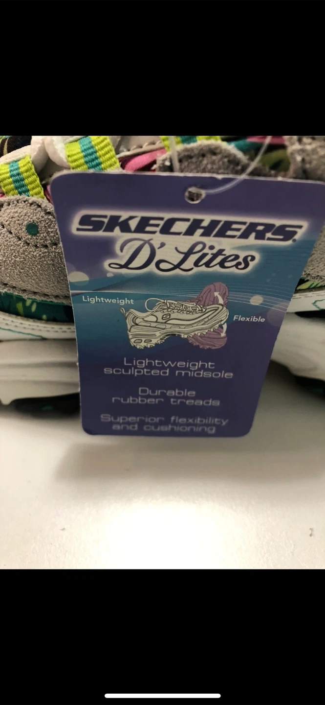 These Skechers D'Lites sneakers are lightweight and flexible. They feature a sculpted midsole and durable rubber treads. Great for everyday wear!brand new $70 firm thanks.