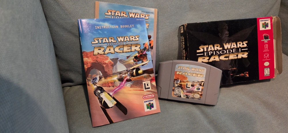 Selling my childhood copy of Star Wars Episode I Racer for the Nintendo 64! It comes with the original box and instruction booklet. A fun retro game for any Star Wars or racing fan!
