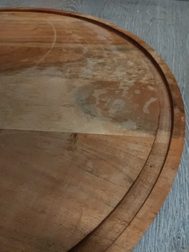 Selling a wooden serving tray that's perfect for entertaining or adding a rustic touch to your home decor. It has a nice, natural wood grain finish. There are some signs of use.