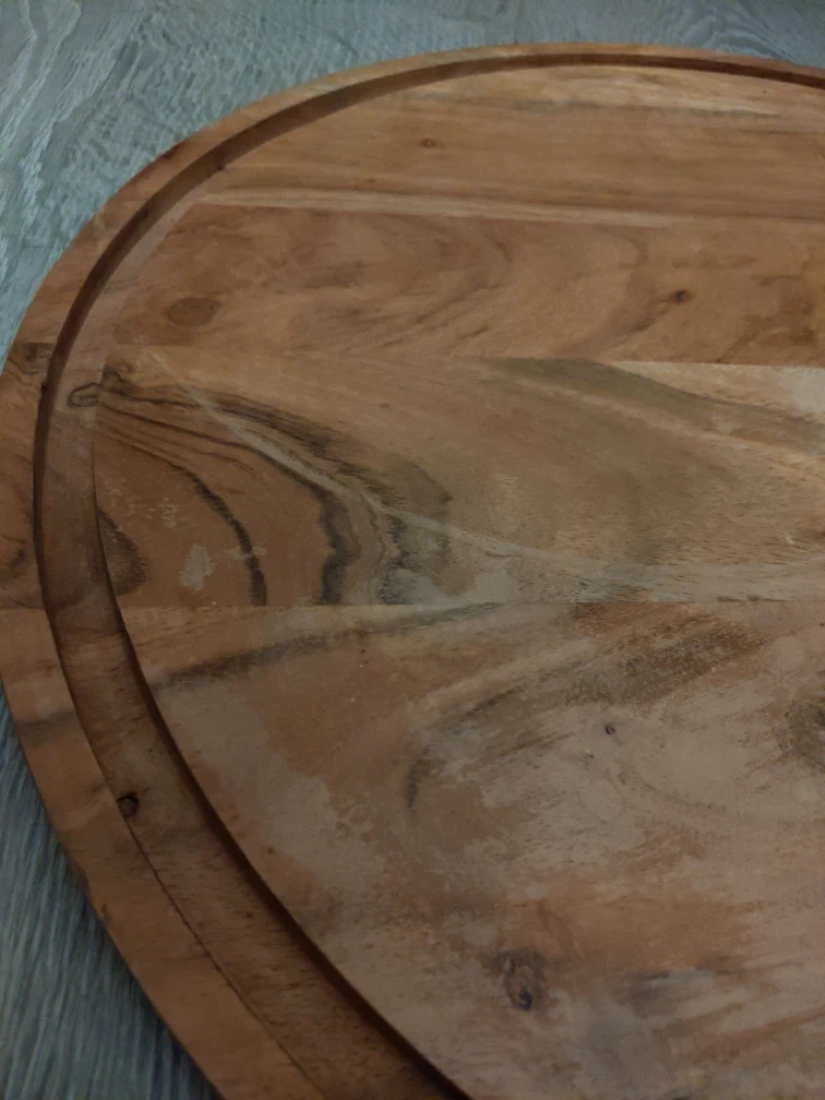 Selling a wooden serving tray that's perfect for entertaining or adding a rustic touch to your home decor. It has a nice, natural wood grain finish. There are some signs of use.