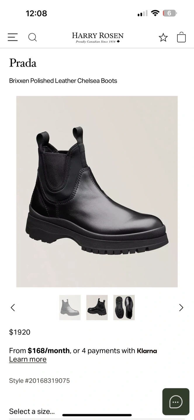 These are Prada Brixxen Chelsea boots in black. They're made from polished leather and stretch fabric. These boots offer a sleek look and comfortable fit.