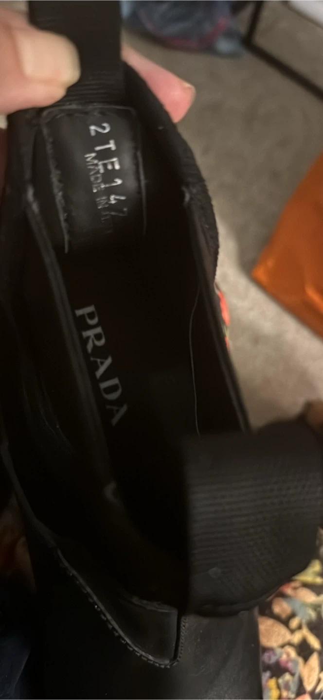 These are Prada Brixxen Chelsea boots in black. They're made from polished leather and stretch fabric. These boots offer a sleek look and comfortable fit.