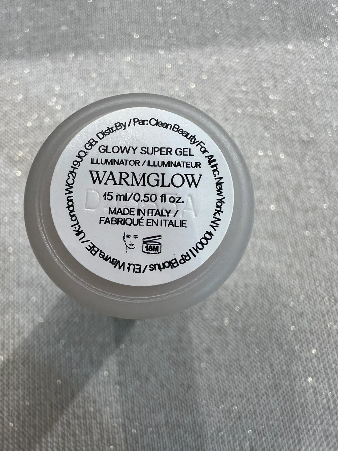 This is the Saie Glowy Super Gel Illuminator in the shade Warmglow. It's a mini size, 15 ml or 0.50 fl. oz., made in Italy. It provides a dewy, lit-from-within finish.