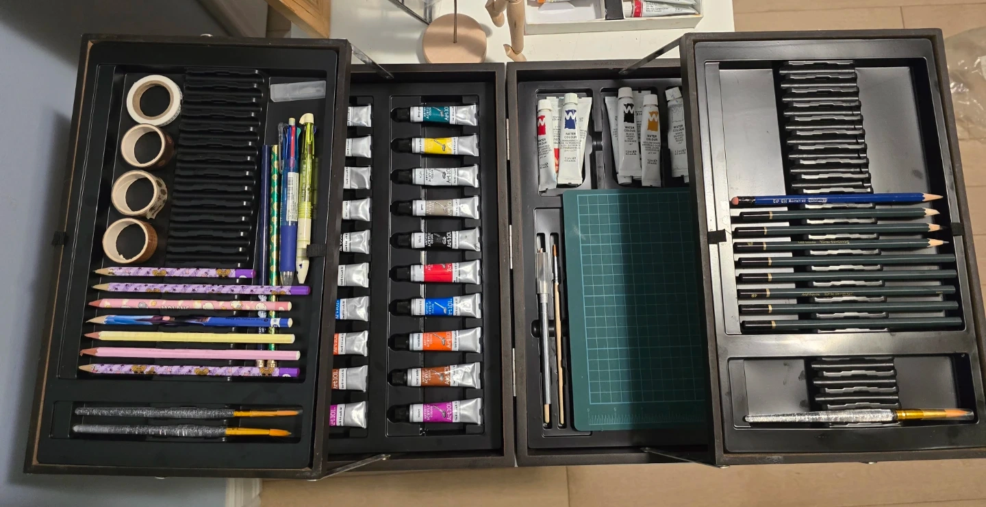 My daughter has recently headed off to university and is no longer using her art supplies. We are looking to find a new home for this complete set, perfect for any aspiring artist or hobbyist!