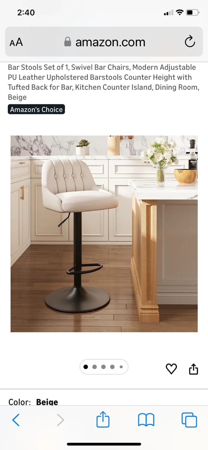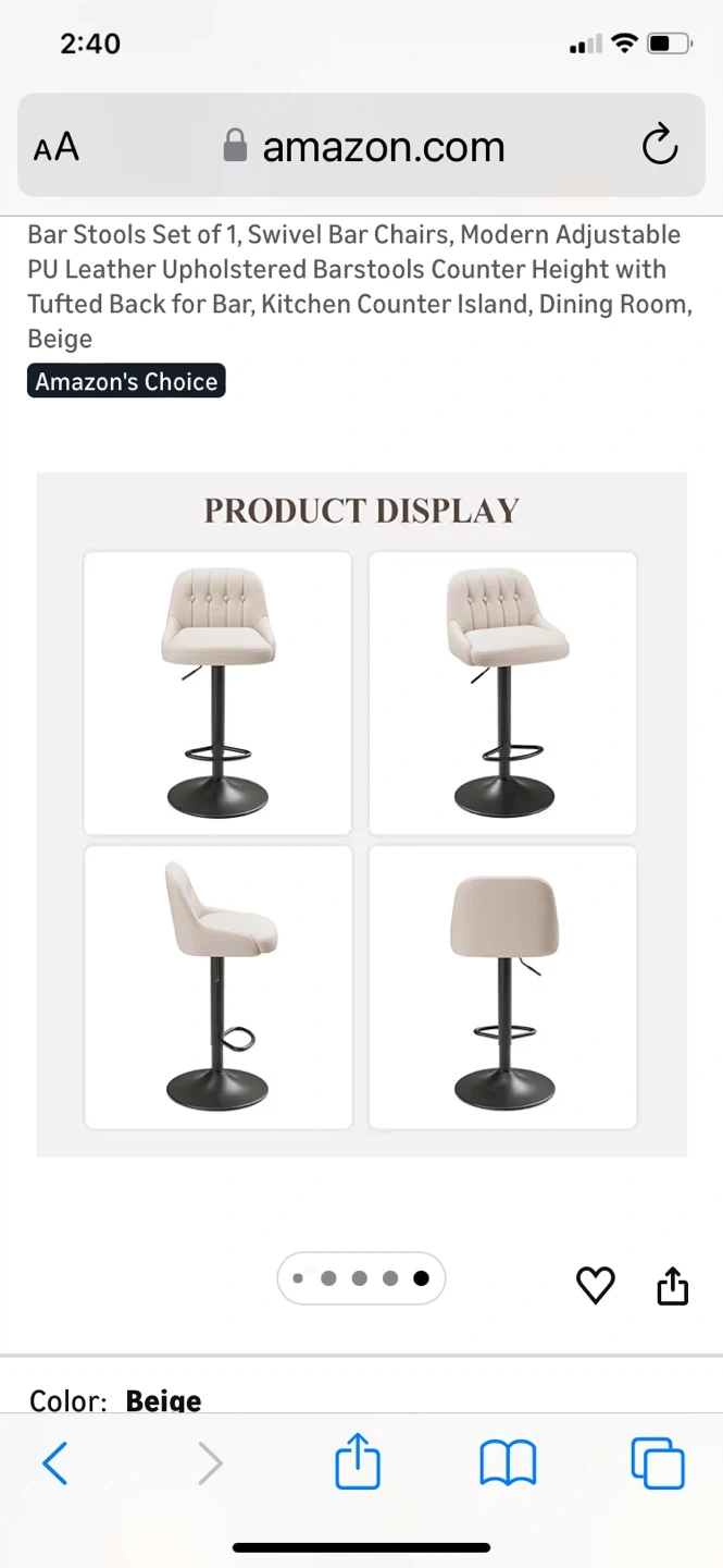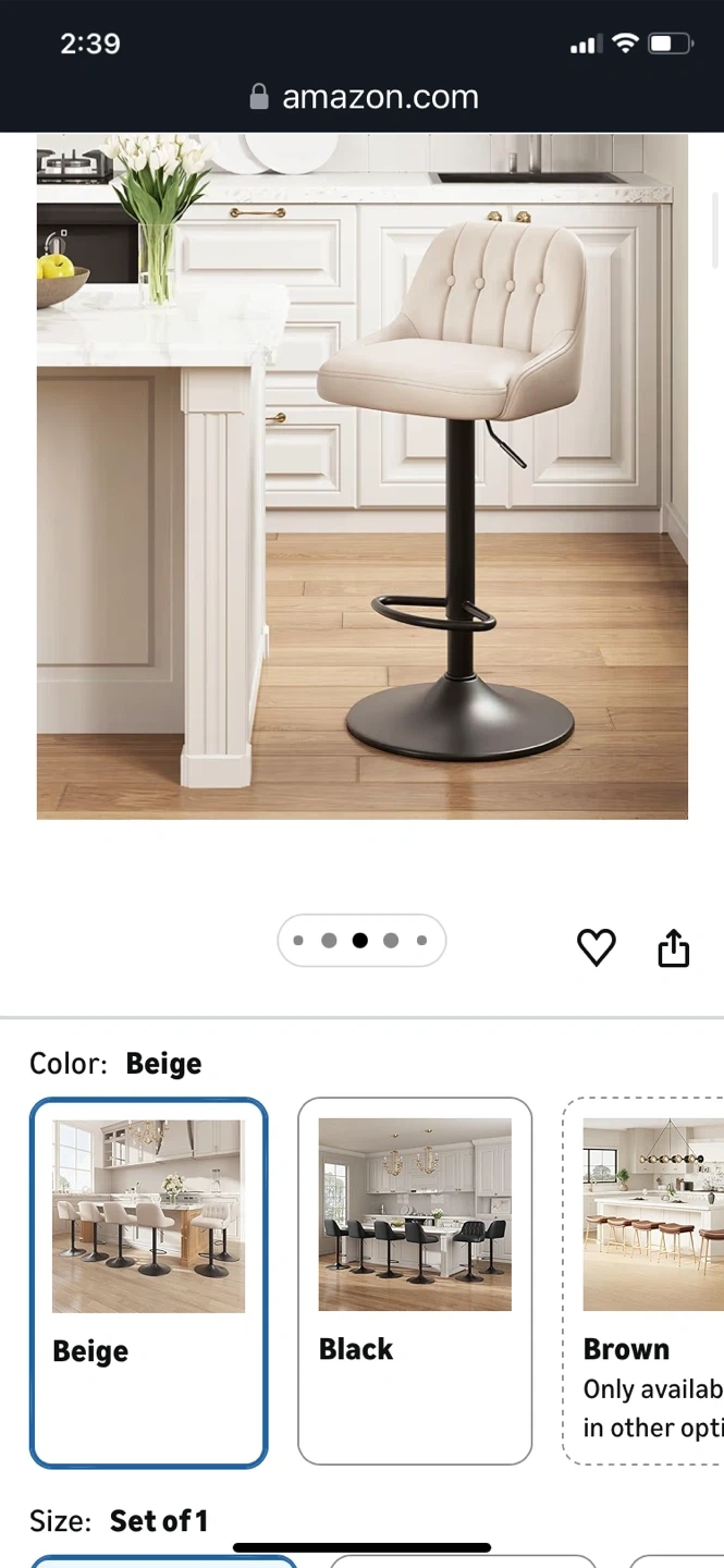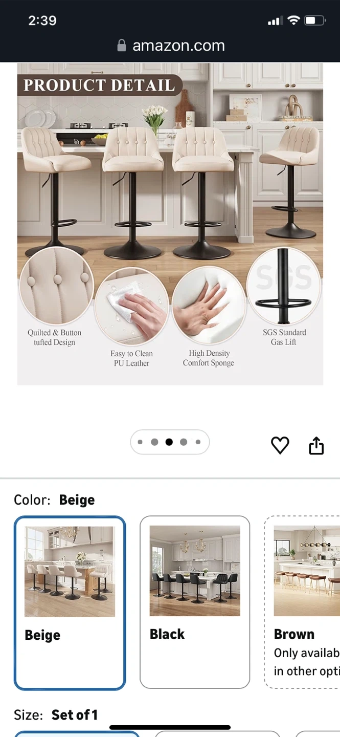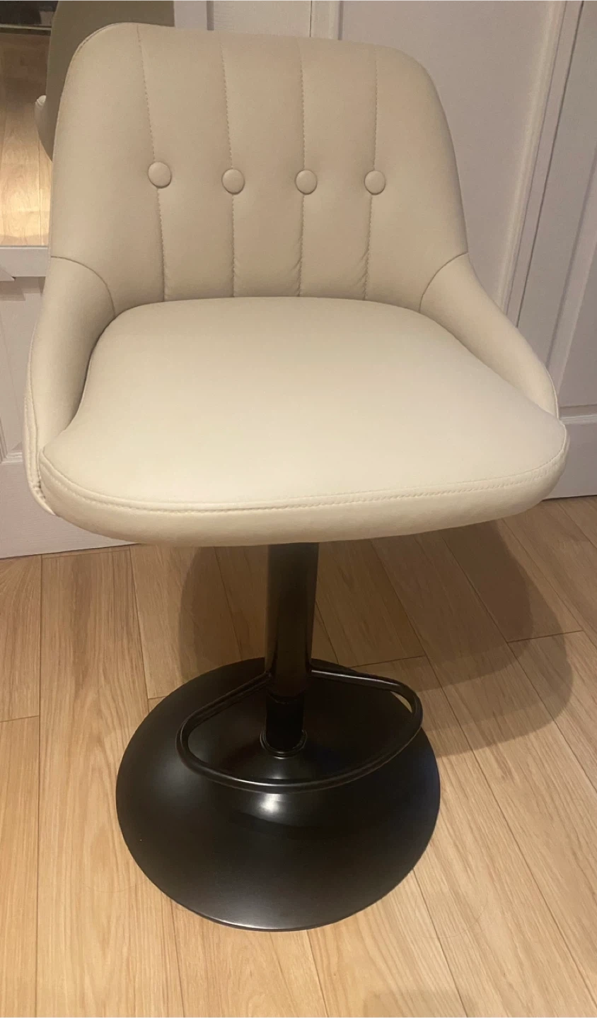 Modern adjustable bar stools with tufted back. Features smooth 360 swivel and a solid pedestal footrest. Height adjusts from 26.1" to 34.6" for versatile seating. "Amazon's Choice" item with high-density comfort sponge.bought for $79.99