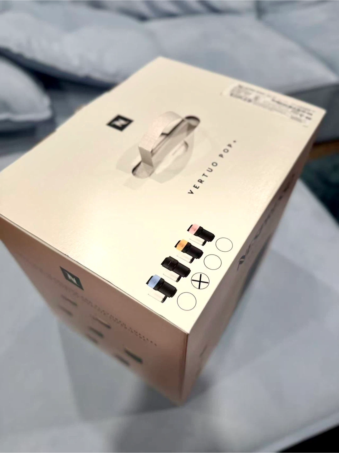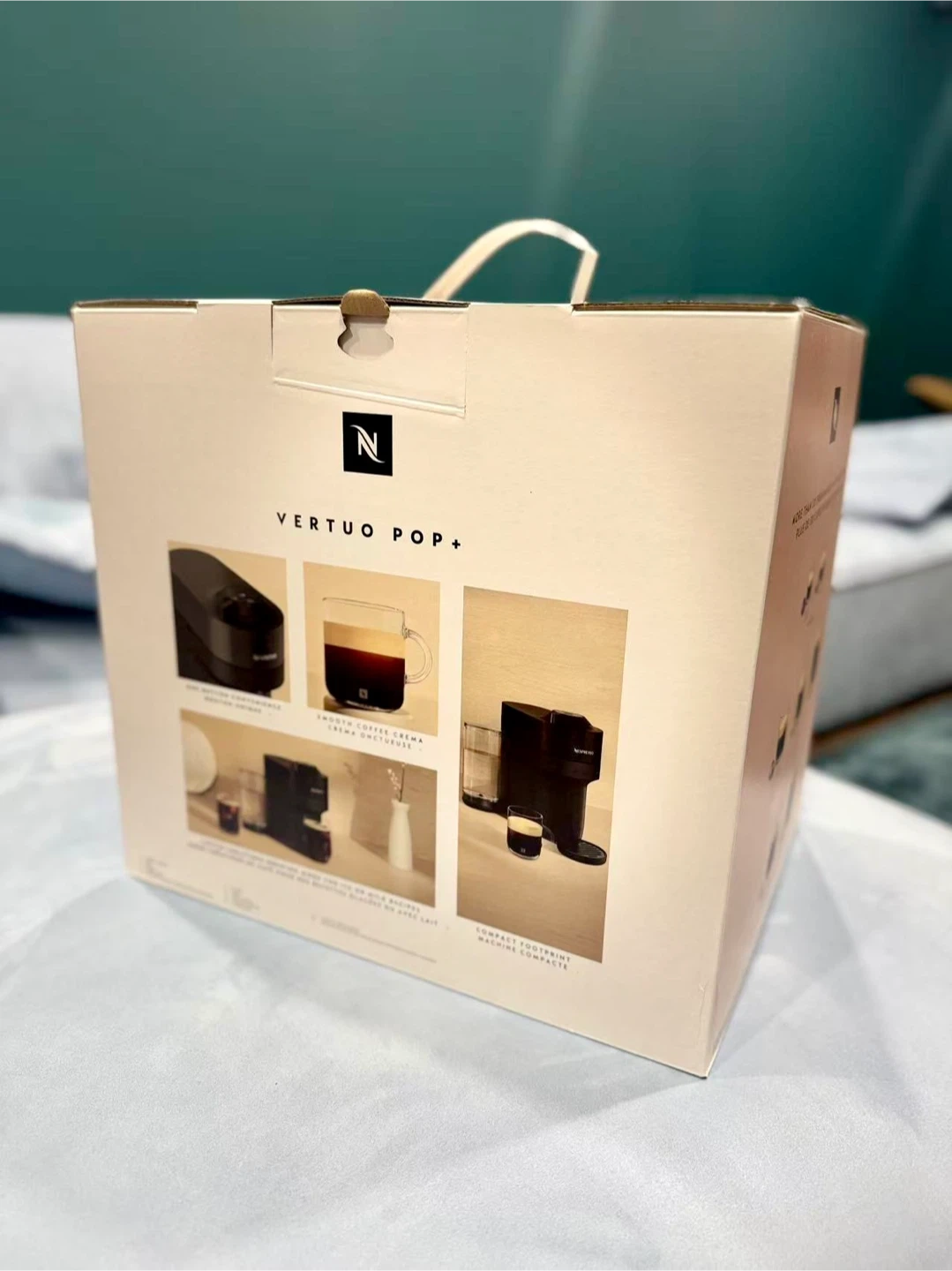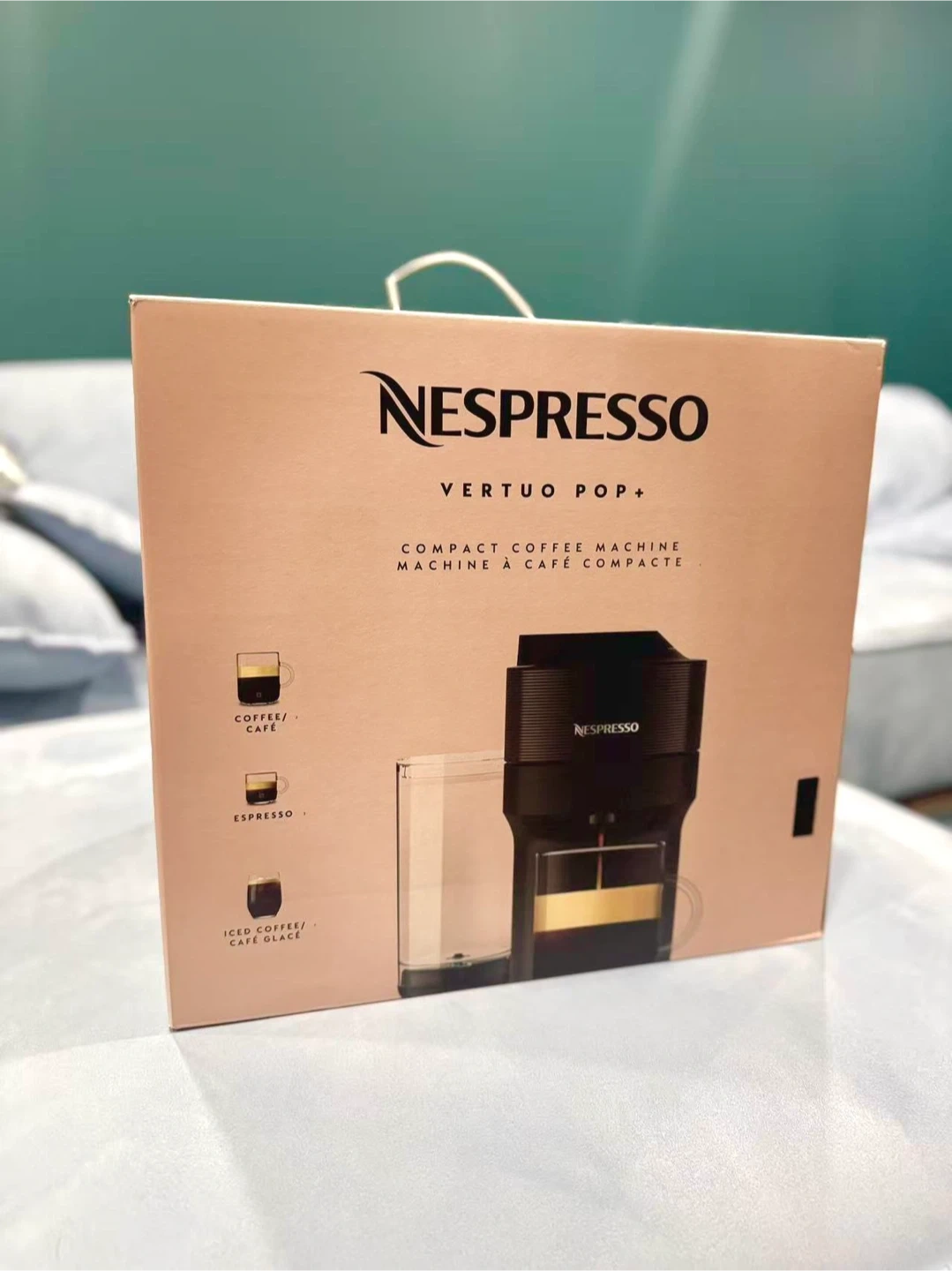 This Nespresso Vertuo Pop+ is a compact coffee machine. It makes coffee and espresso. It's designed for a small footprint.